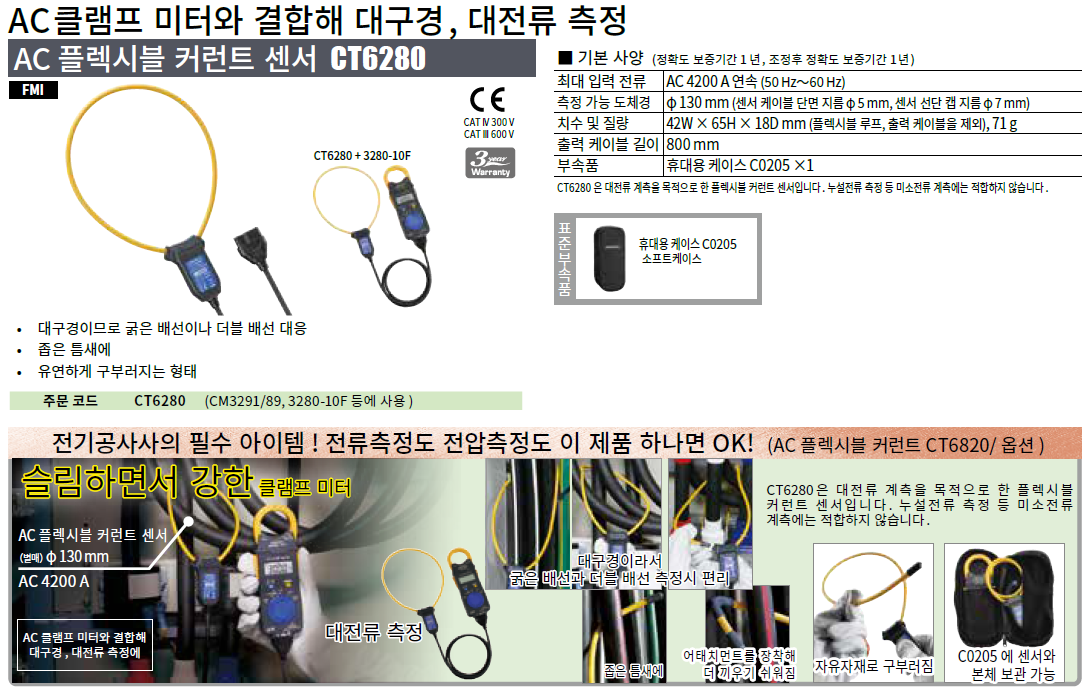 CT6280은 대전류 계측을 목적으로 한 플렉시블 커런트 센서입니다.