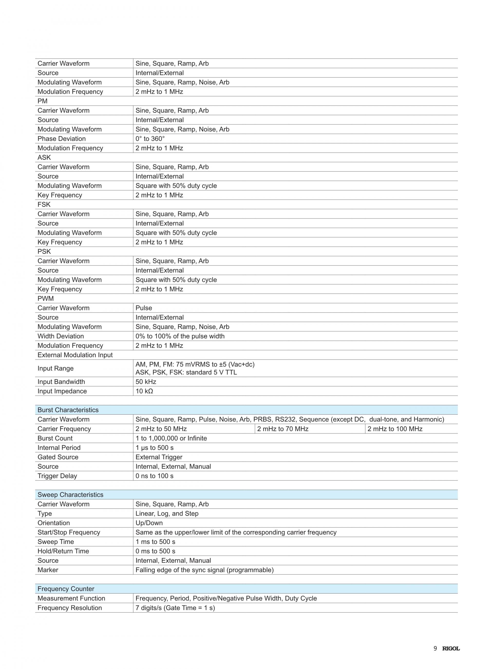 리골 RIGOL DG2000 임의 파형 · 함수 발생기 시리즈