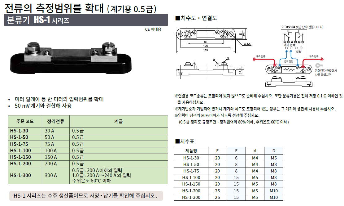 | HS-1-300 | 300 A, 계급 1.0급 |