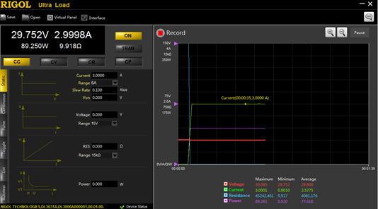 정적 모드와 과도 모드에서 DL3000 화면에 실제 부하 성능을 표시합니다. 전력, 전압, 전류, 저항 모드에서 사용자 정의 가능한 슬루 레이트 및 주파수 조정하여 테스트를 최적화합니다.