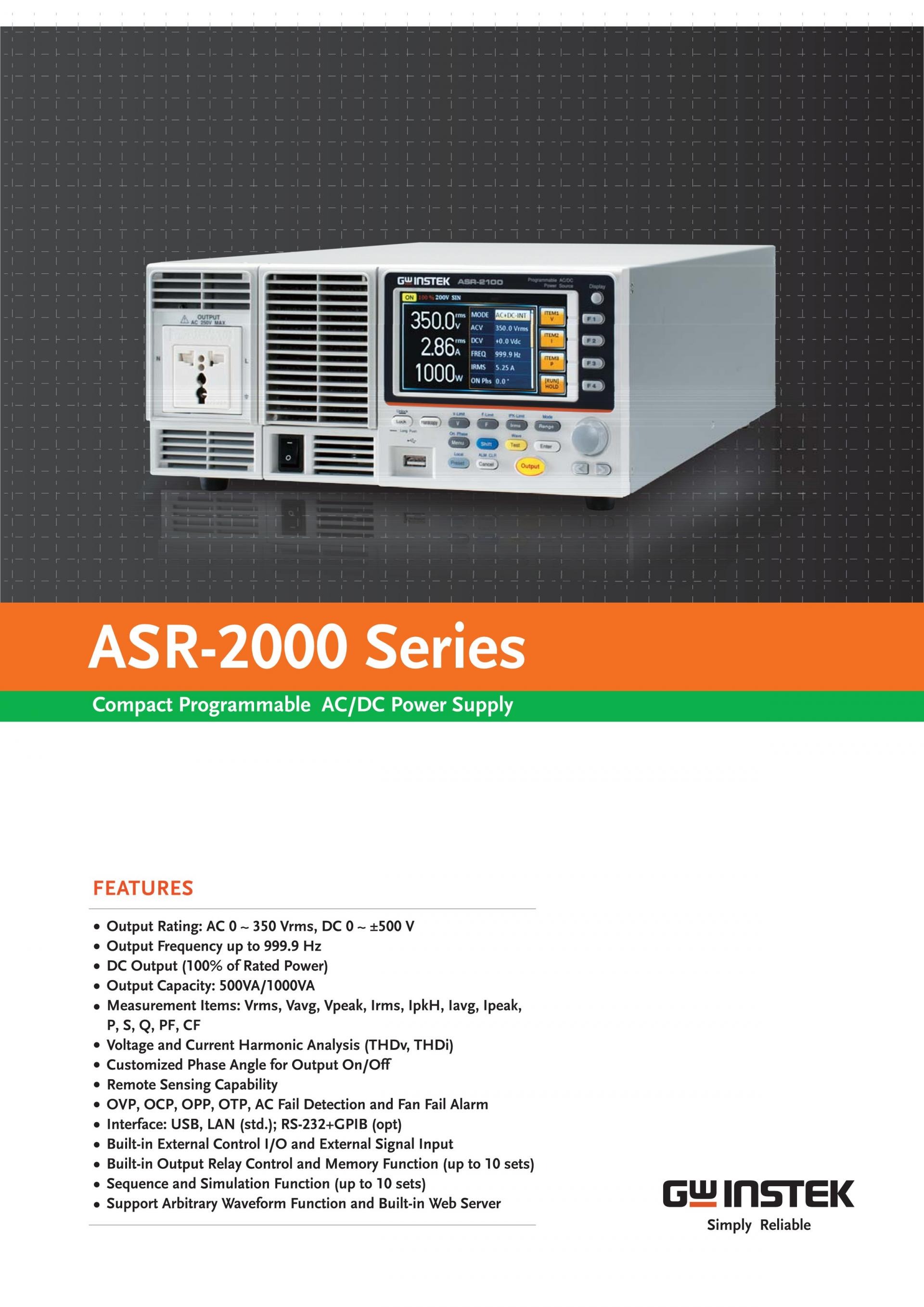 ASR-2000 Series — Programmable AC/DC Power Source