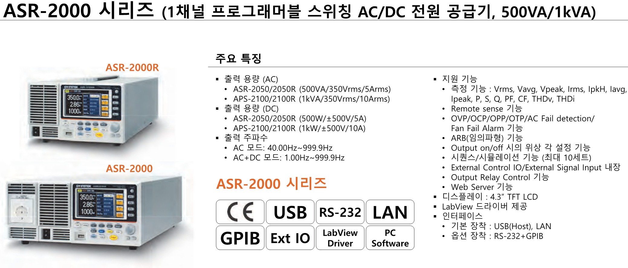 GW INSTEK 굿윌 인스텍 굿윌인스텍 ASR-2000 AC/DC 전원 공급 장치 시리즈 – 굿맨시스템 (가격문의)