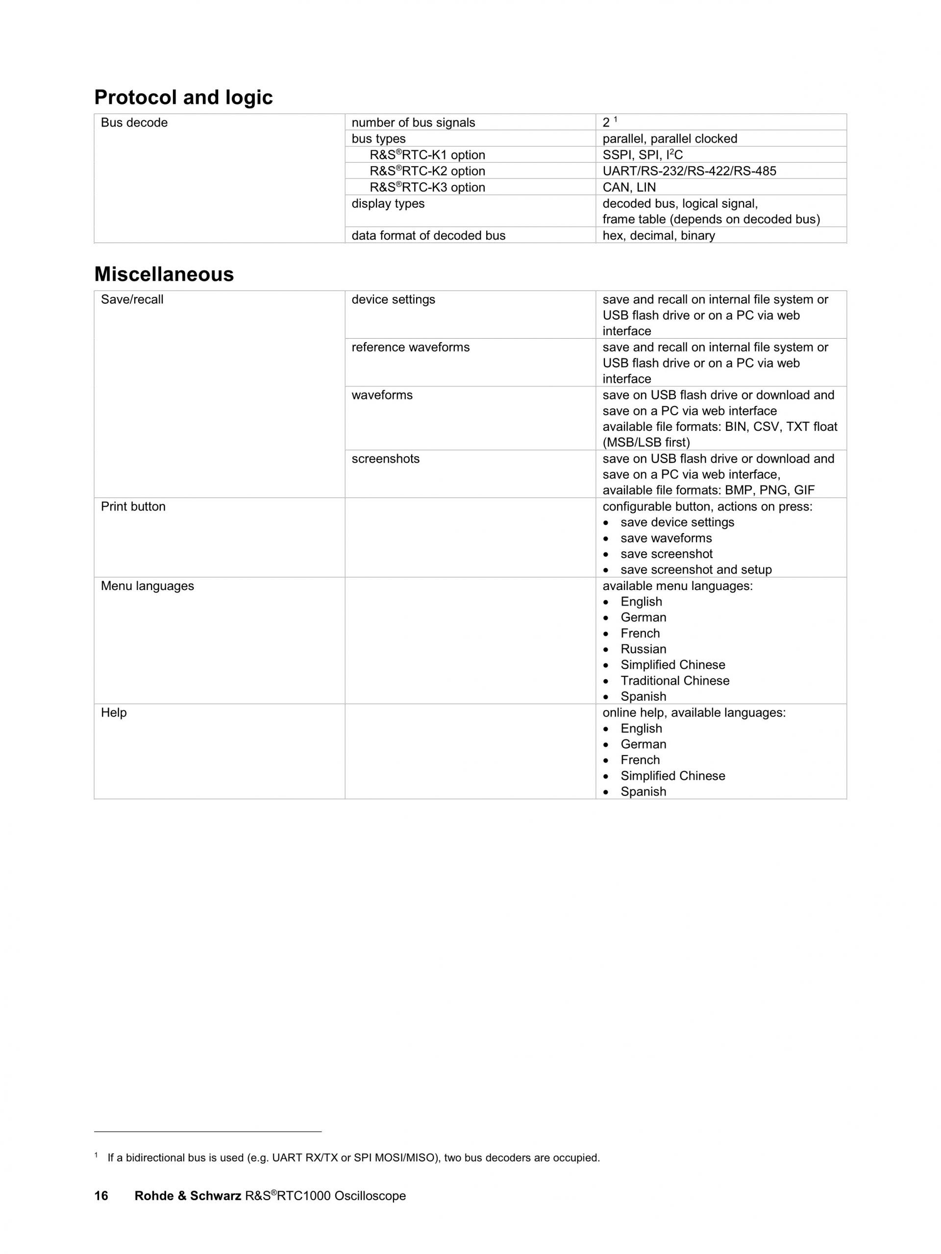 - Max. memory depth: 2 Msample