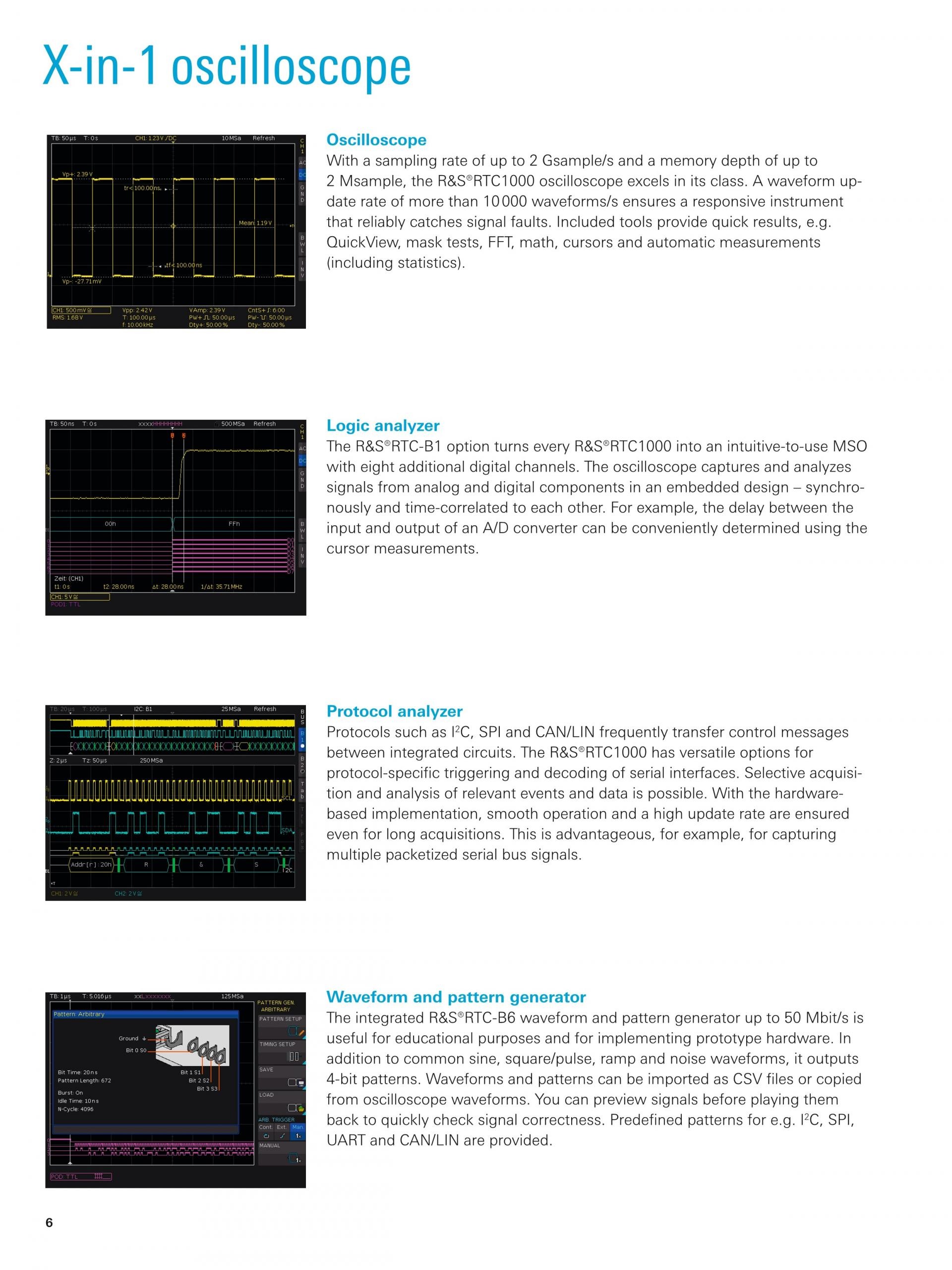 R&S®RTC1000 오실로스코프가 특별한 이유는 뛰어난 감도와 다양한 기능, 합리적 가격 때문입니다. 다양한 기능 덕분에 임베디드 개발자부터 서비스 기술자, 교육자까지 광범위한 사용자를 지원합니다. 팬리스 디자인의 고성능, 첨단 기술이 오늘날의 고객의 높은 요구 사항을 만났습니다.