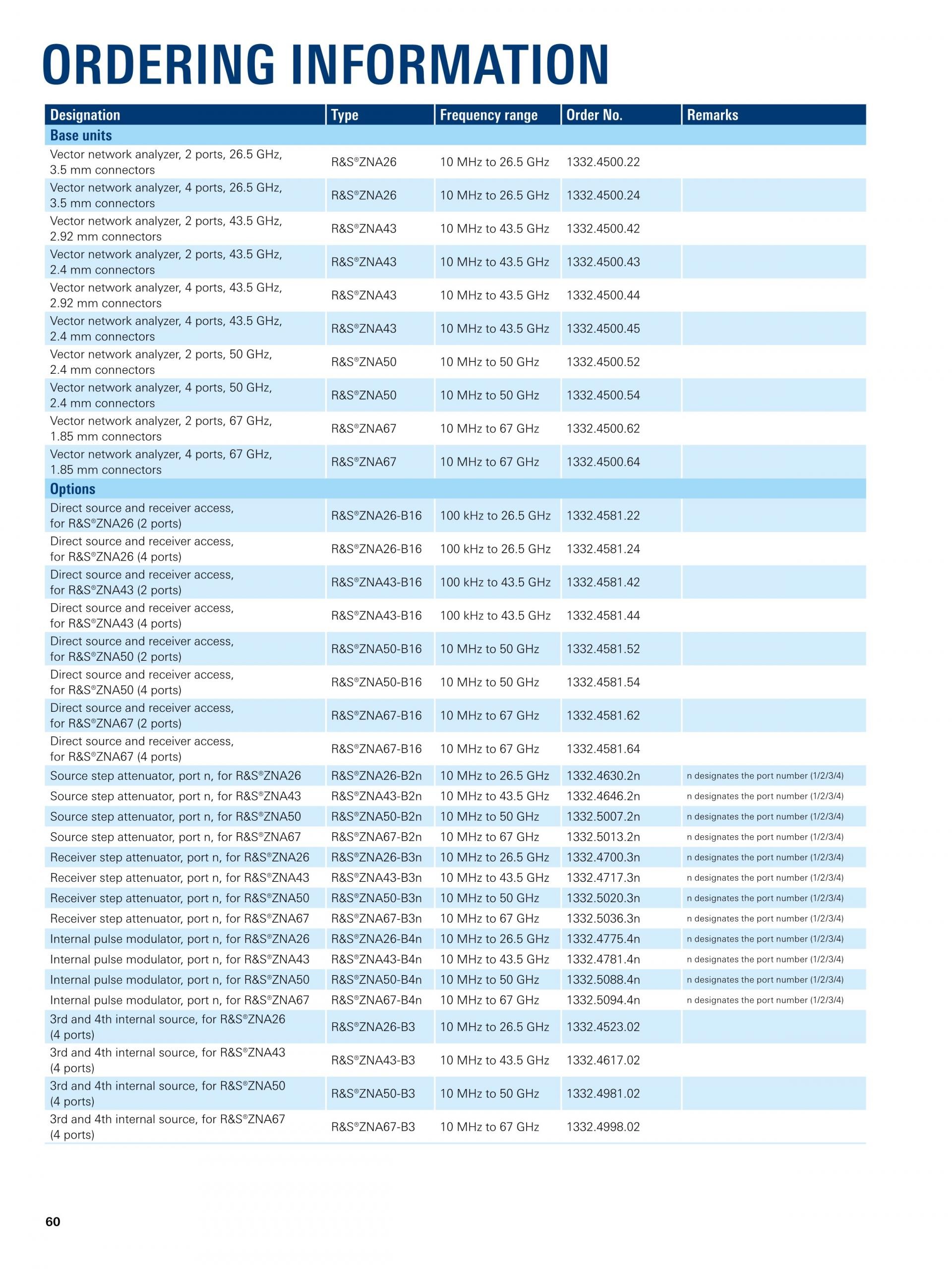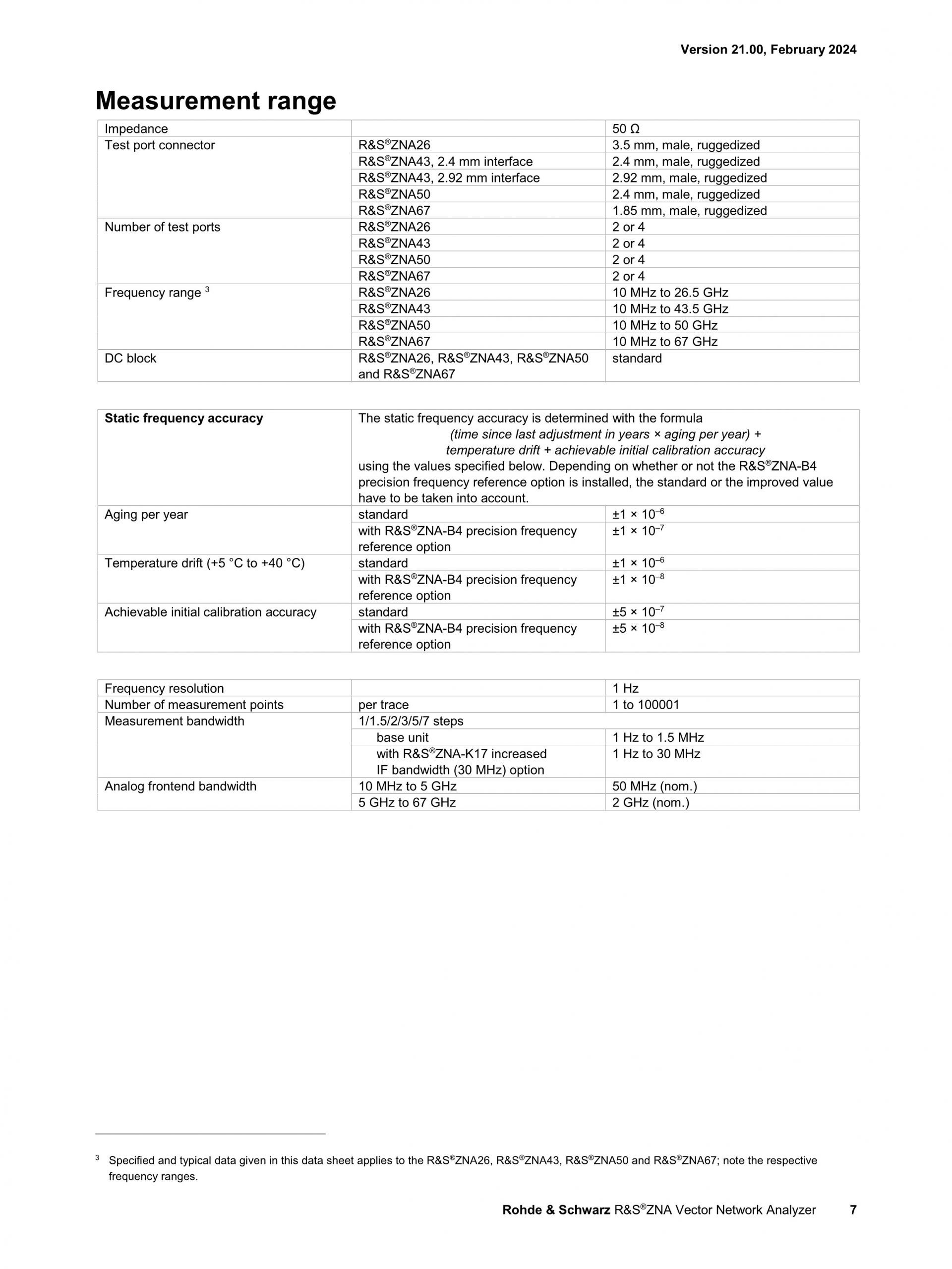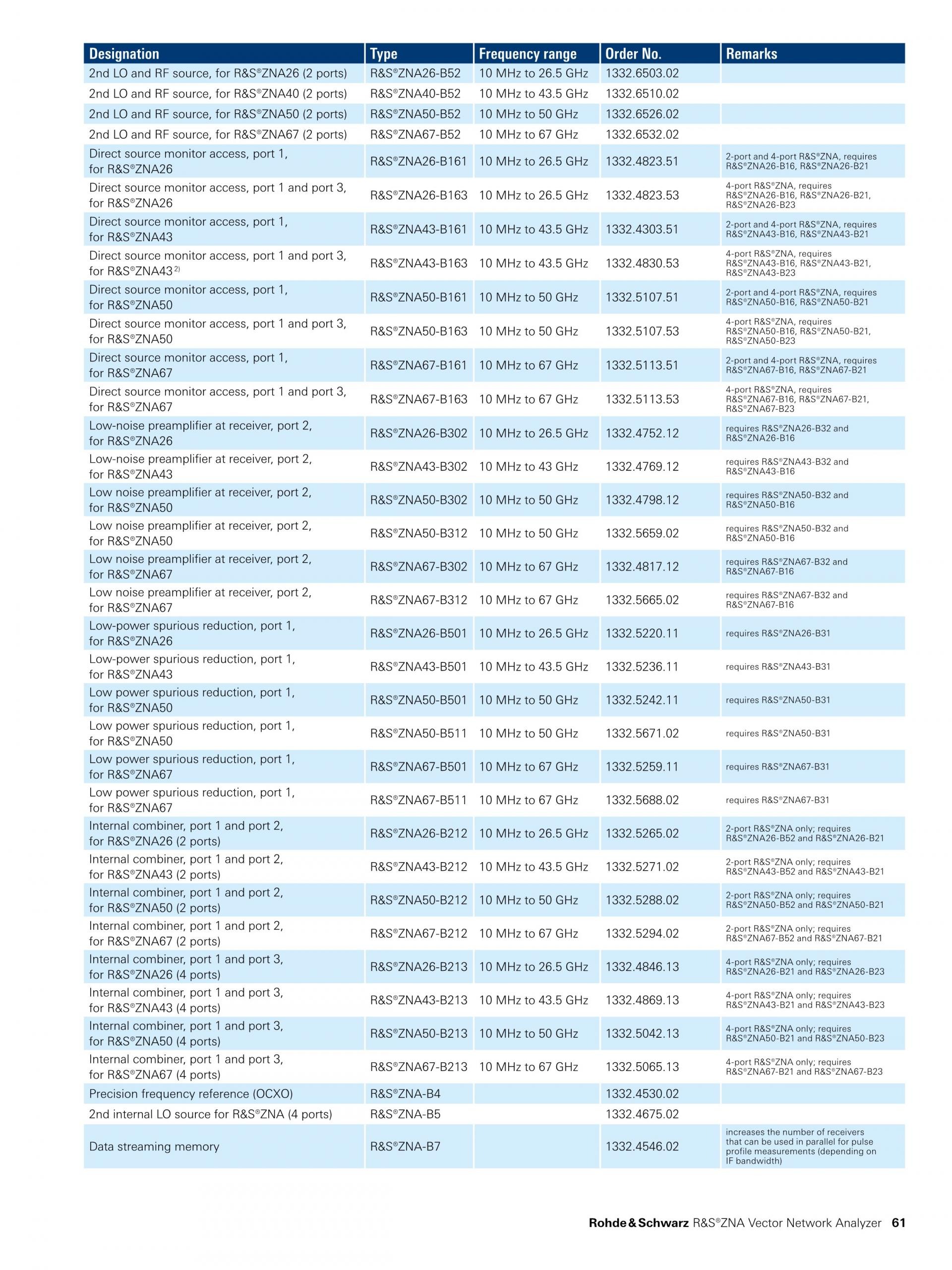 - 10MHz ~ 26.5/43.5/50/67GHz (R&S®ZNA26/43/50/67),