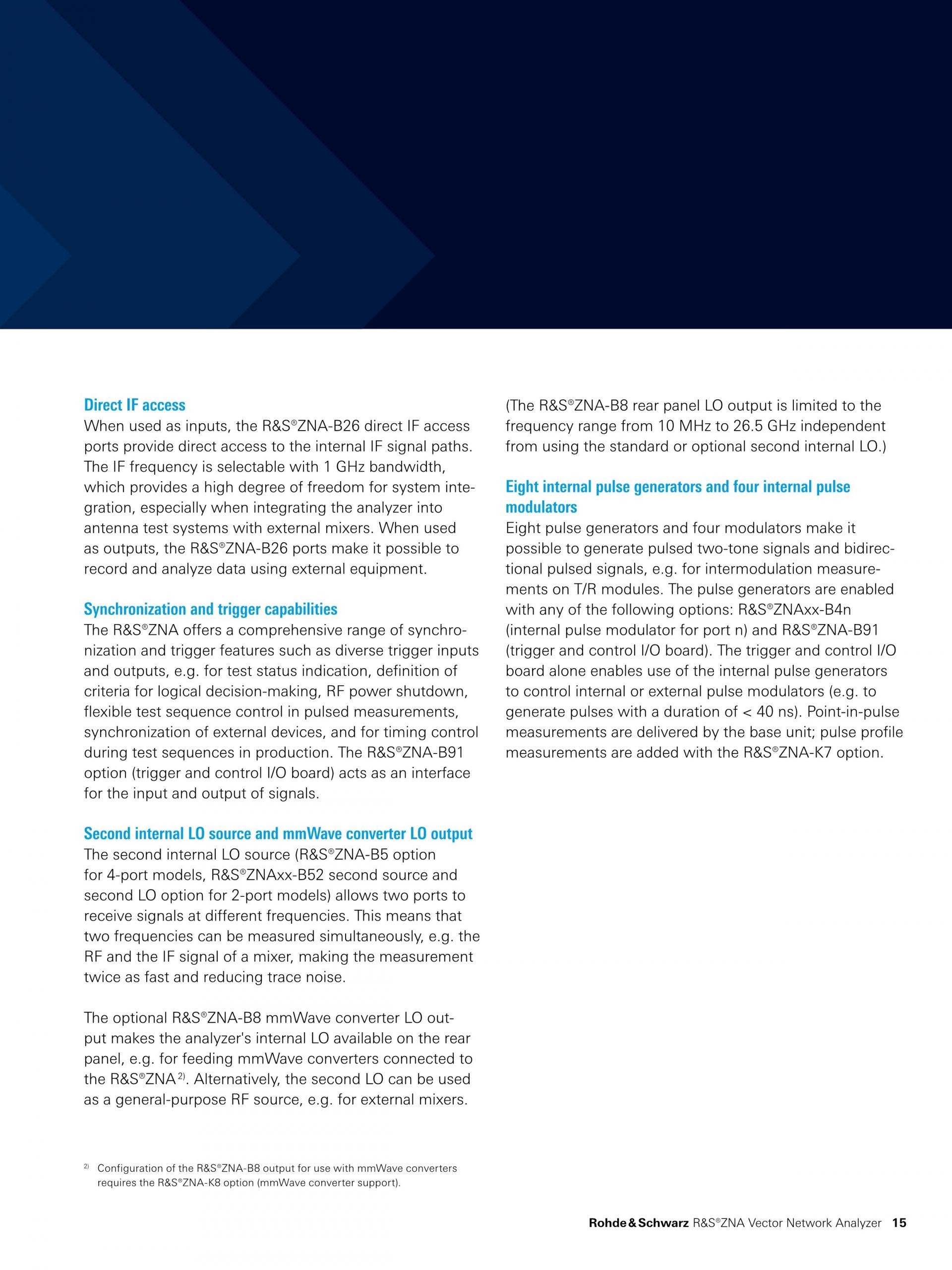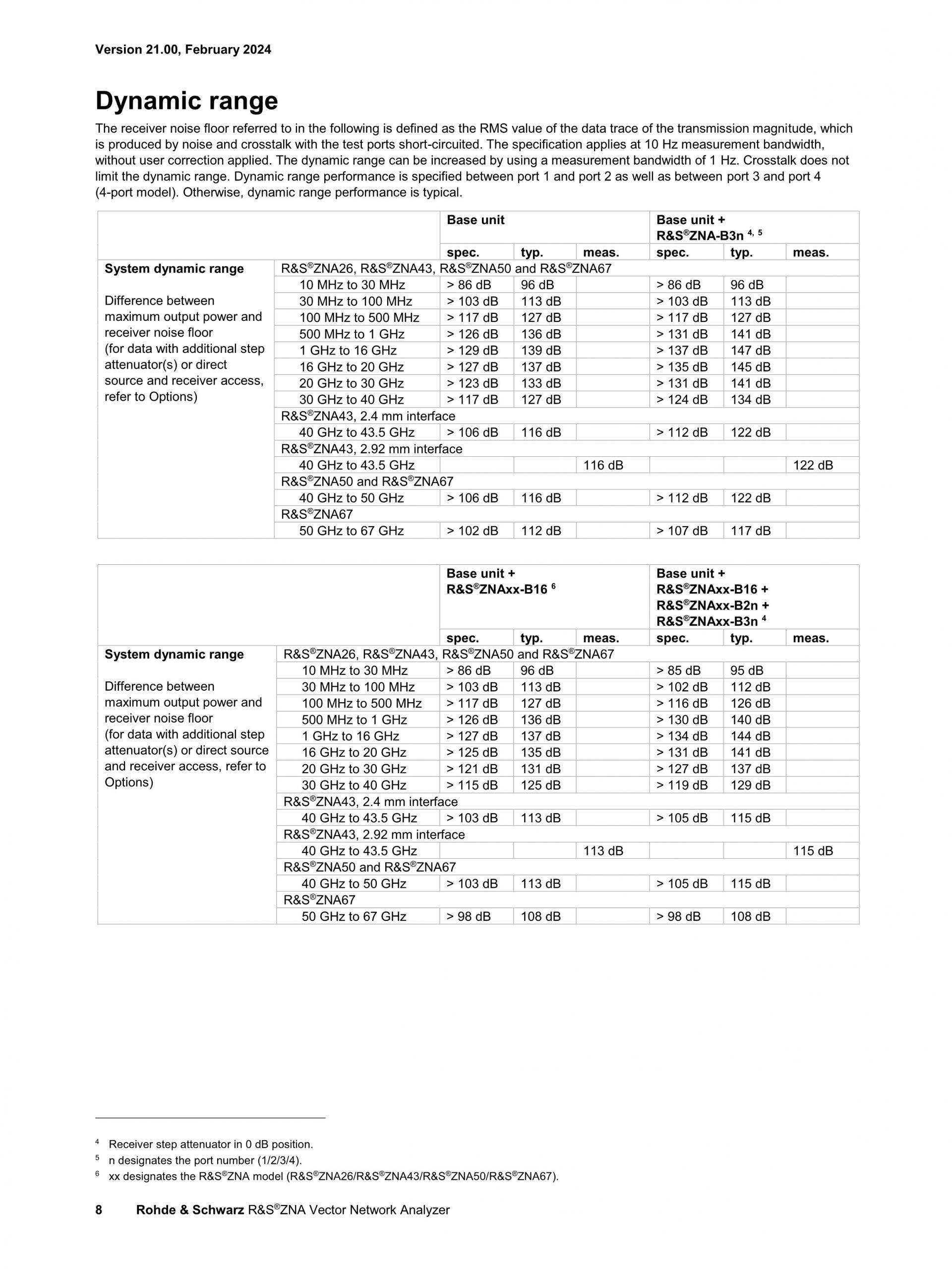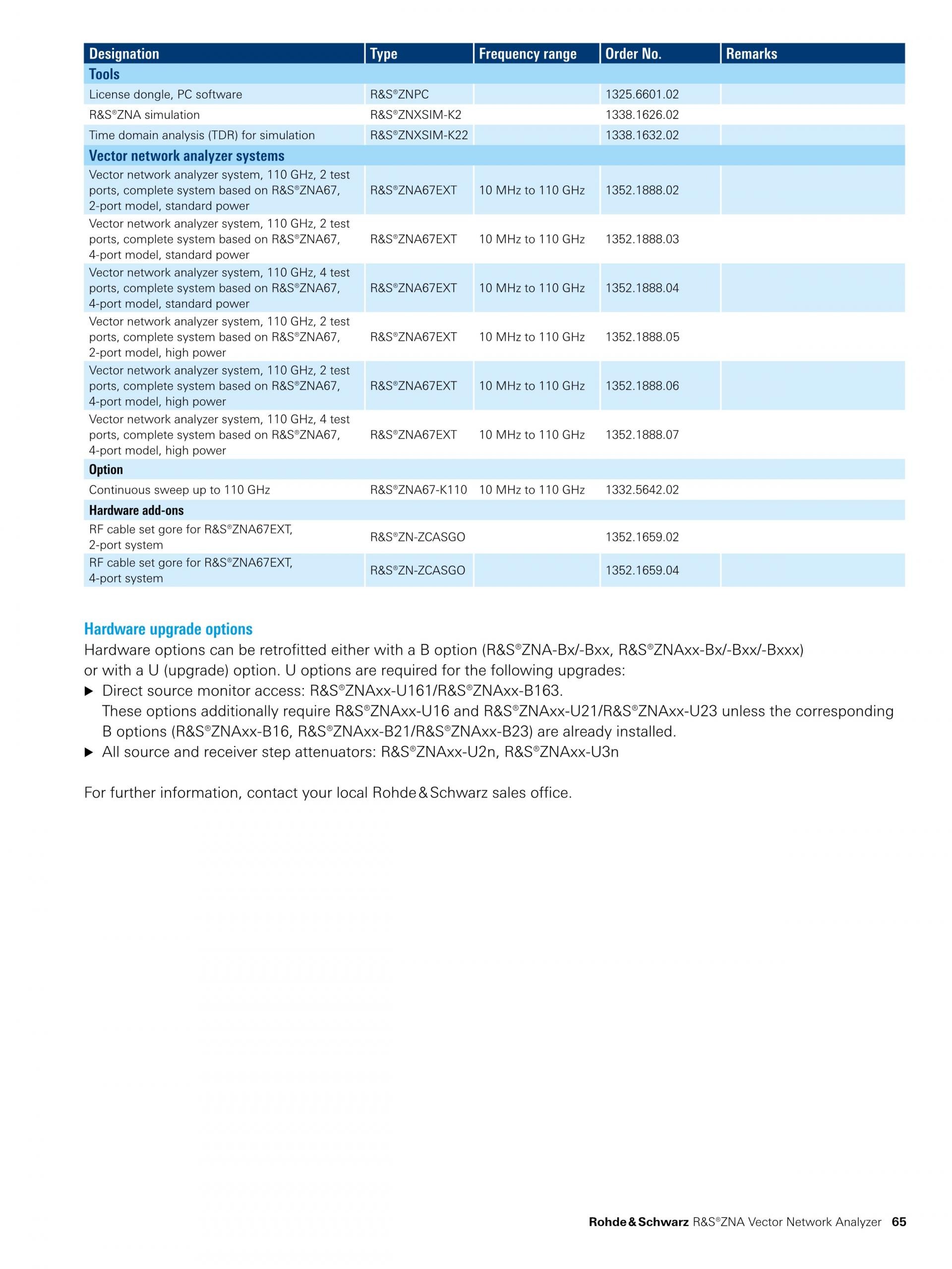 - 10MHz ~ 26.5/43.5/50/67GHz (R&S®ZNA26/43/50/67),