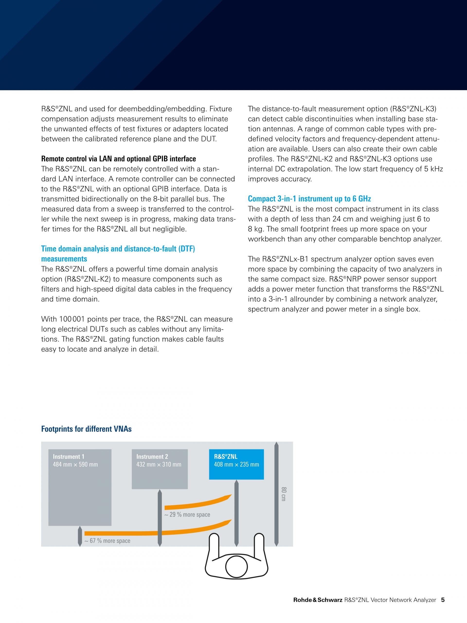 R&S®ZNL은 제품 고유의 옵션 컨셉으로 효율적인 투자를 가능하게 합니다.5 kHz ~ 20 GHz의 주파수를 지원하는 기본 모델에, 확장을 통해 일체형 스펙트럼 분석기 탑재 및 RF 파워 미터 지원이 가능합니다.또한, 스펙트럼 분석은 CW 신호 발생기 옵션을 지원합니다. R&S®ZNL은 컴팩트한 단일 기기로 동급의 다른 전용 기기에 비해 빠른 측정 속도와 뛰어난 RF 성능을 제공하는 컴팩트한 단일 기기로서, 연구소, 서비스 센터, 대학, 생산 설비에서 필요한 다양한 장비 투자를 대체할 수 있습니다.