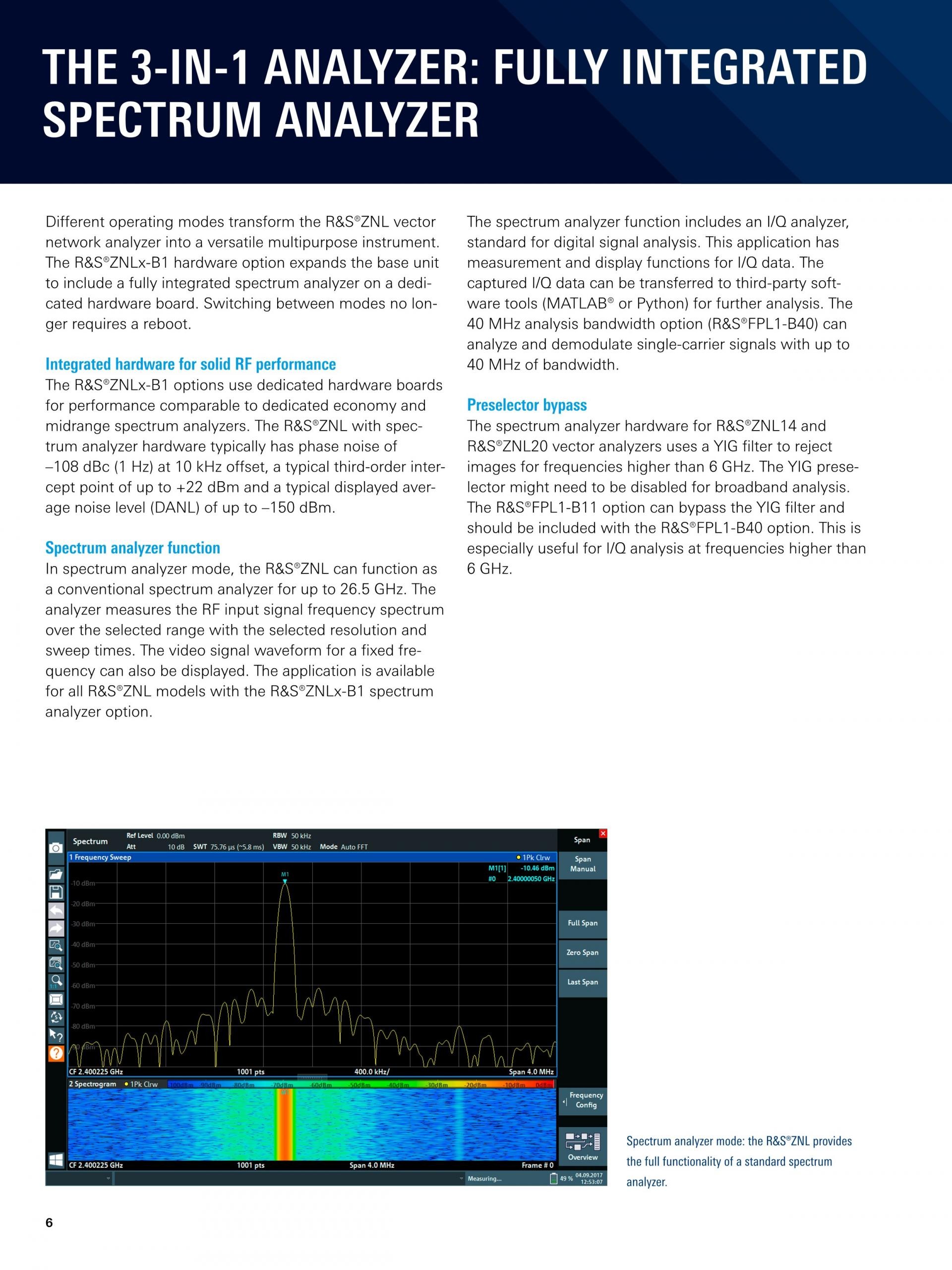 3-in-1 또한 모든 R&S®ZNL 모델은 R&S®FPL의 기능에 해당하는 최대 26.5 GHz의 스펙트럼 분석기 기능을 추가할 수 있습니다. R&S®ZNL-K14 옵션은 하모닉 및 스퓨리어스 주파수 성분을 측정하는 독립적인 CW 신호 발생기를 추가합니다. |