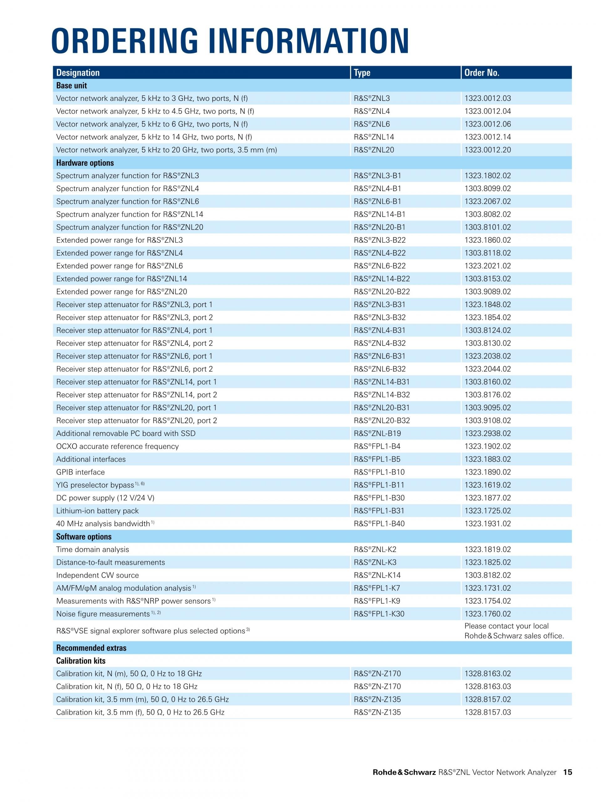 ROHDE & SCHWARZ ZNL VECTOR NETWORK ANALYZERS