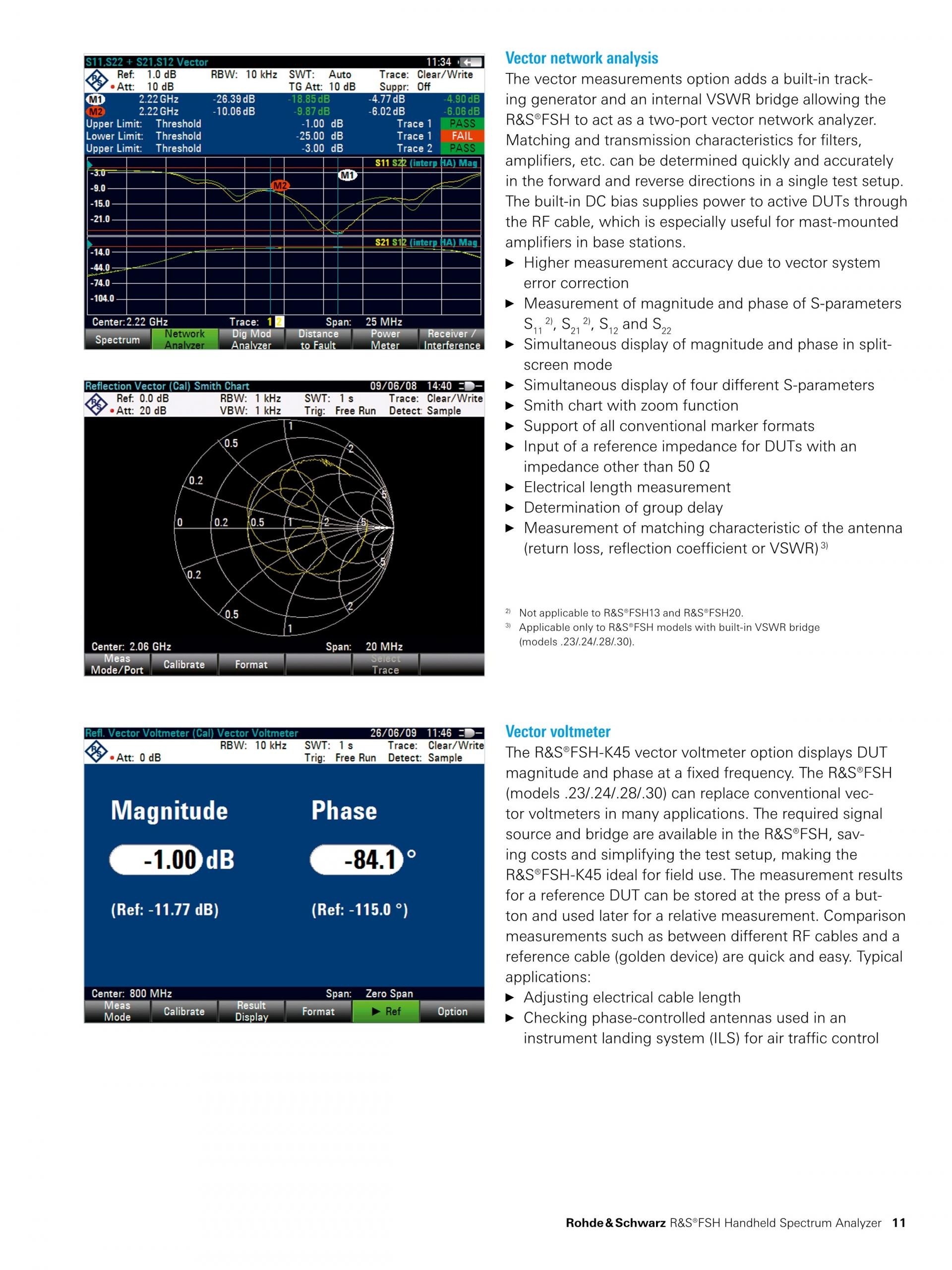 R&S®FSH Handheld Spectrum Analyzer는 또한 네트워크 분석기, 케이블 및 안테나 분석기, 간섭 신호 분석기, 파워 미터 기능을 제공합니다. 다양한 기능을 지원하는 측정기기로서 현장에서 측정을 간단하고 효율적으로 수행할 수 있습니다. 견고한 디자인과 기본 장착된 핸들은 실외 작업에 적합합니다.