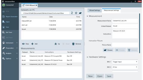 R&S®InstrumentView를 통해 생산성 향상 R&S®InstrumentView 소프트웨어는 마법사 기능 또는 EMF 구성 탭을 사용하여 테스트 설정을 미리 정의할 수 있습니다. |