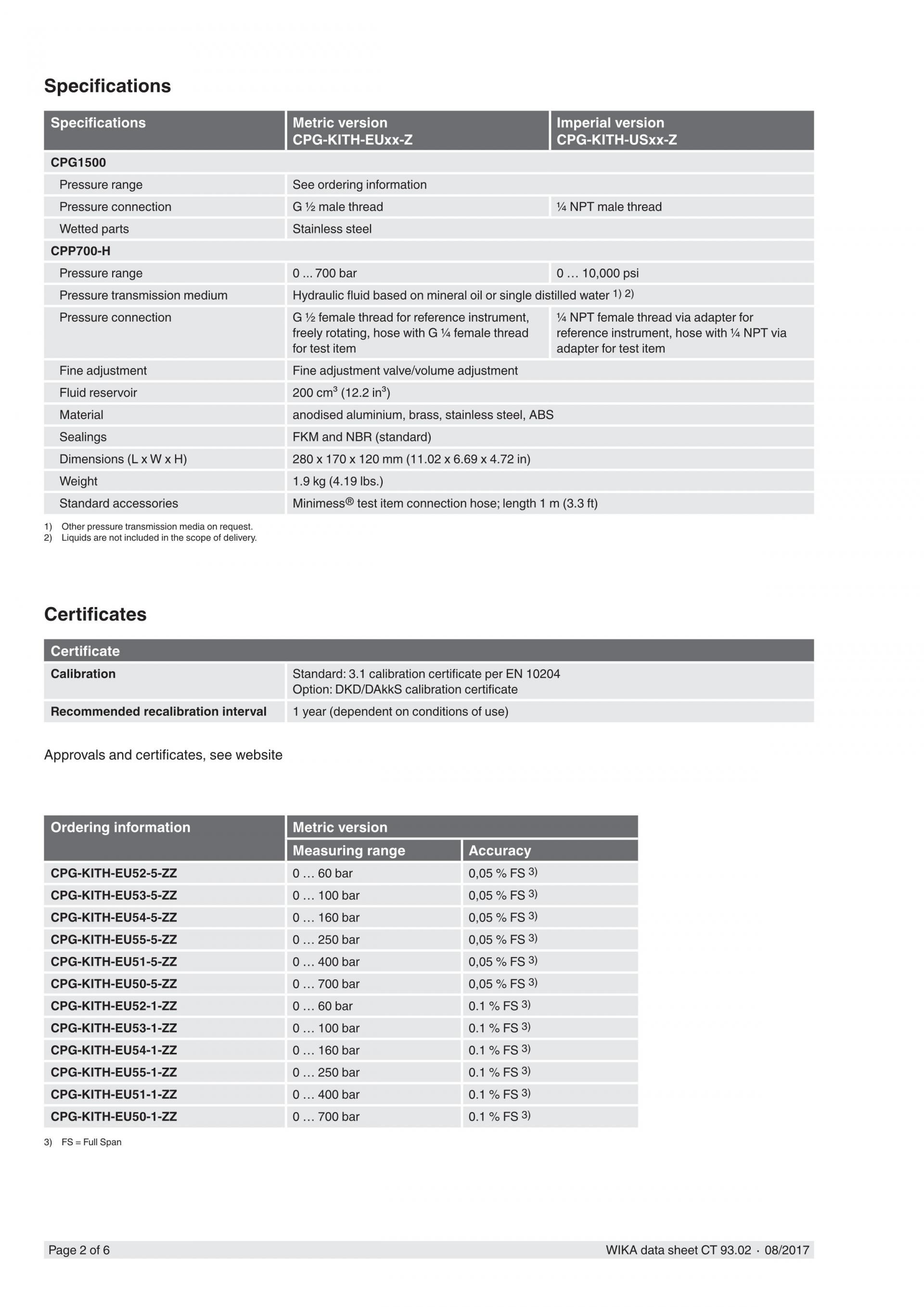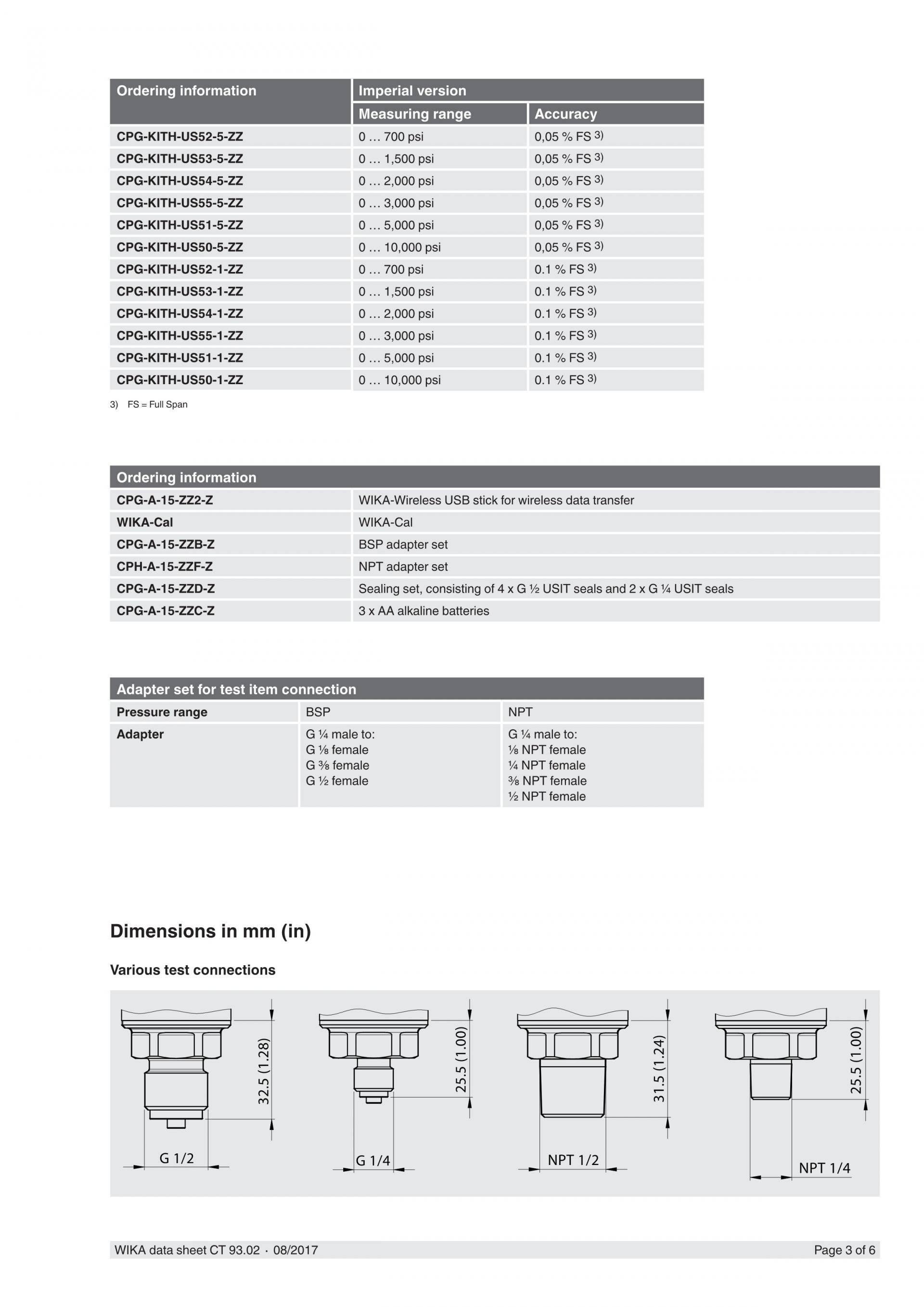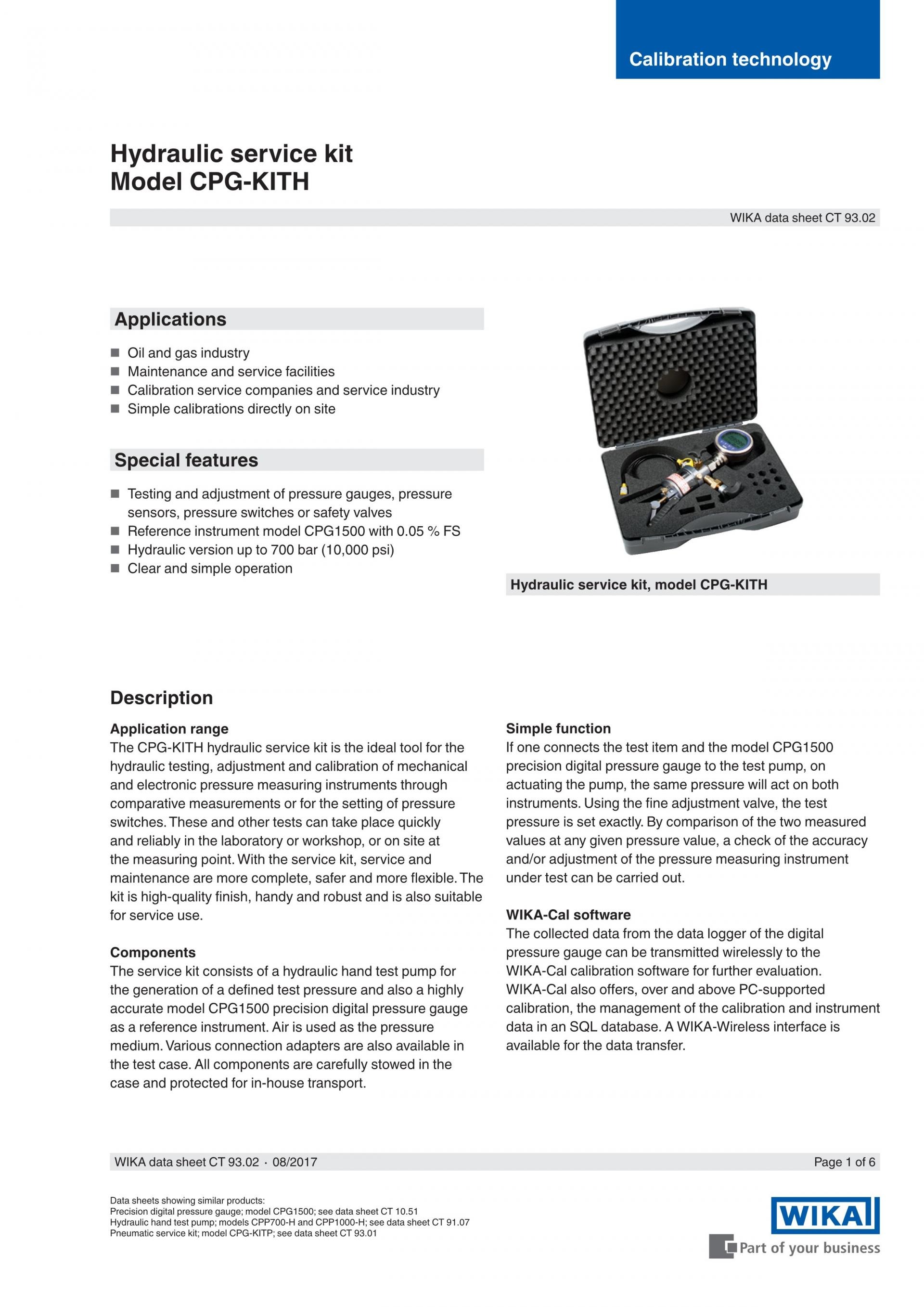 WIKA 비카 CPG-KITH 유압 서비스키트