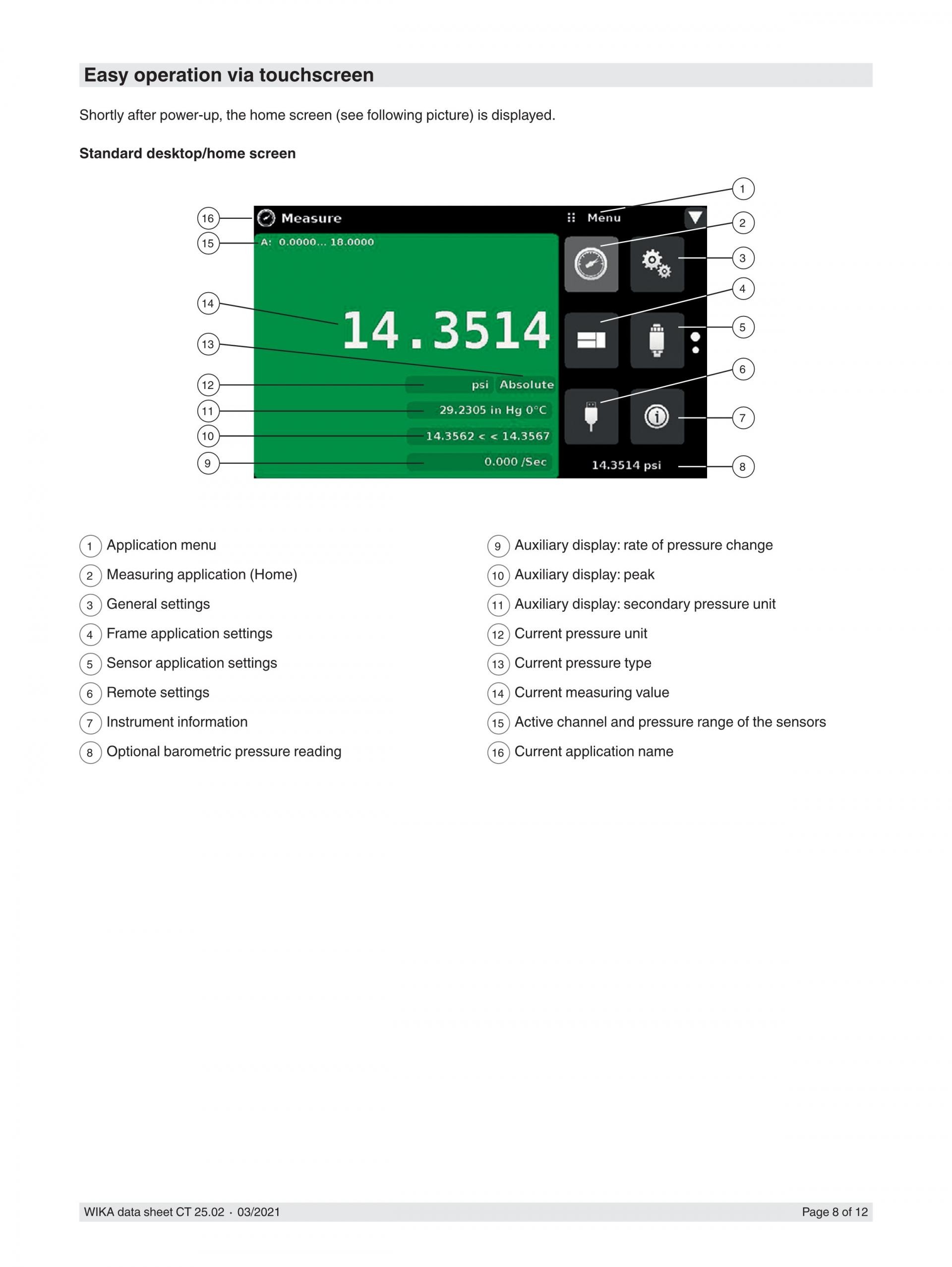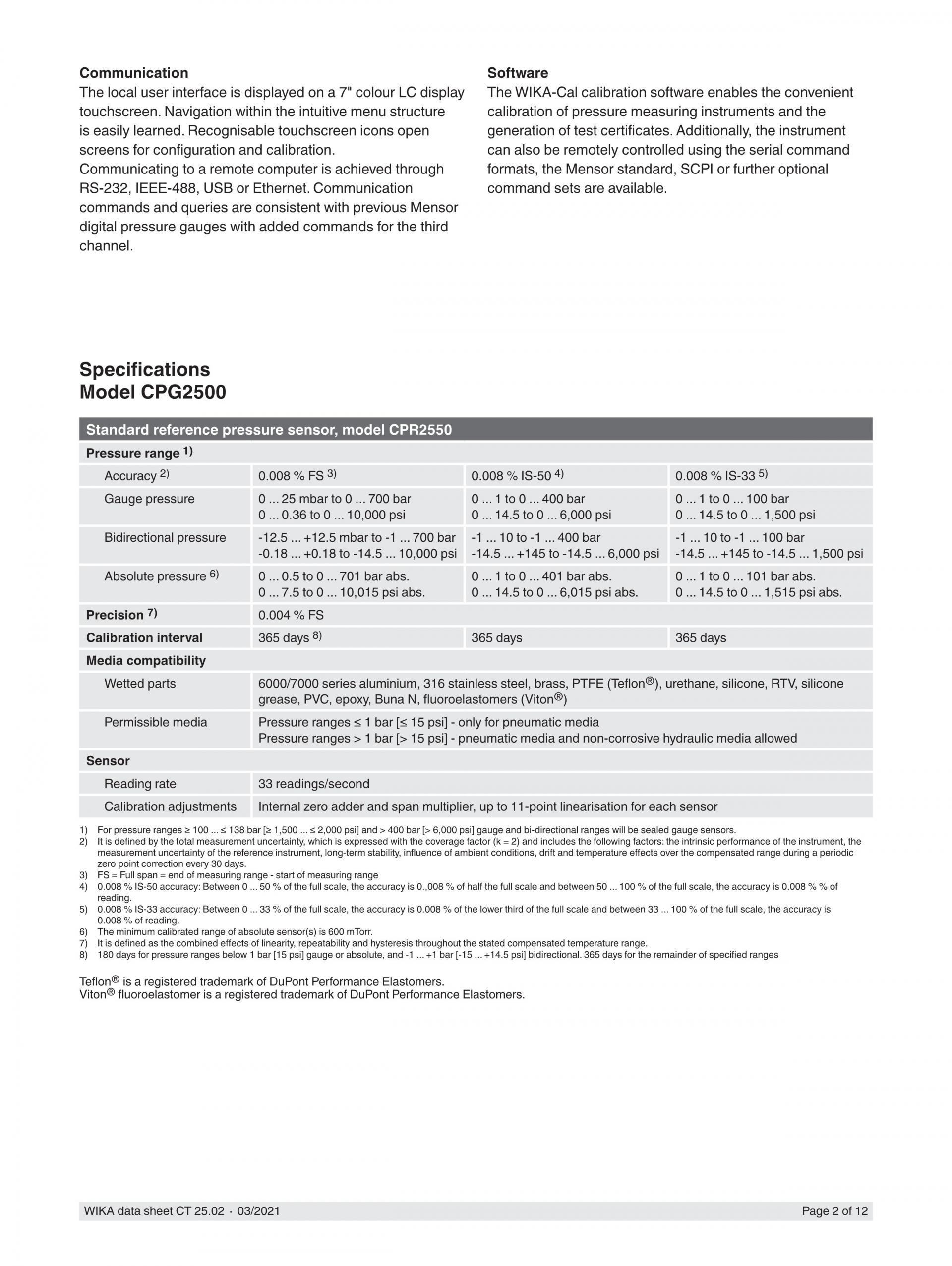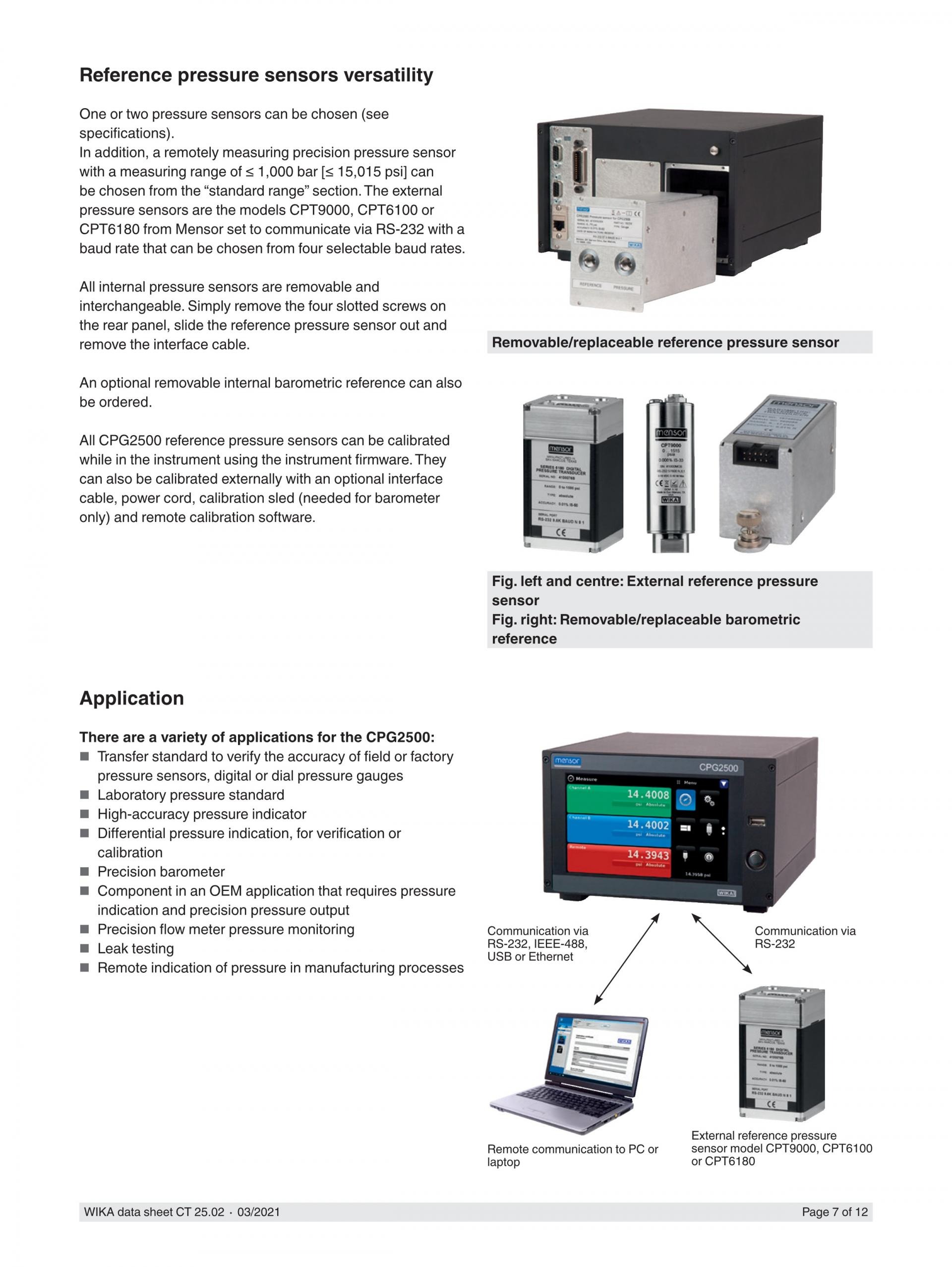 디지털 압력 표시기 내장 된 압력 센서는 표준 및 프리미엄 센서로 사용할 수 있습니다. 외부 기준 압력 센서 Mensor의 CPR2510, CPT6100 또는 CPT6180 정밀 압력 센서로서 사용됩니다.