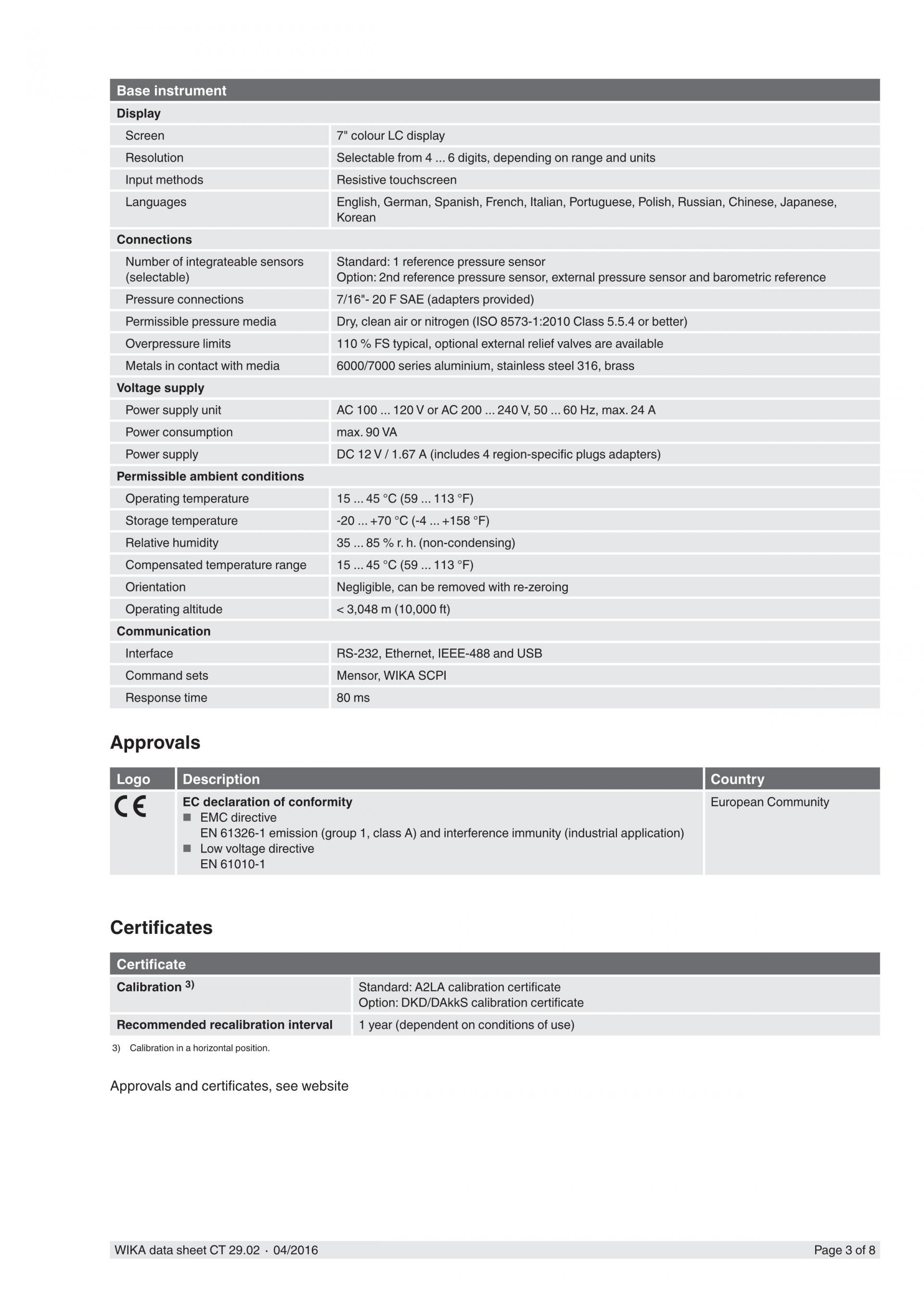 WIKA 비카 CPA2501 에어 데이터 테스트 인디케이터