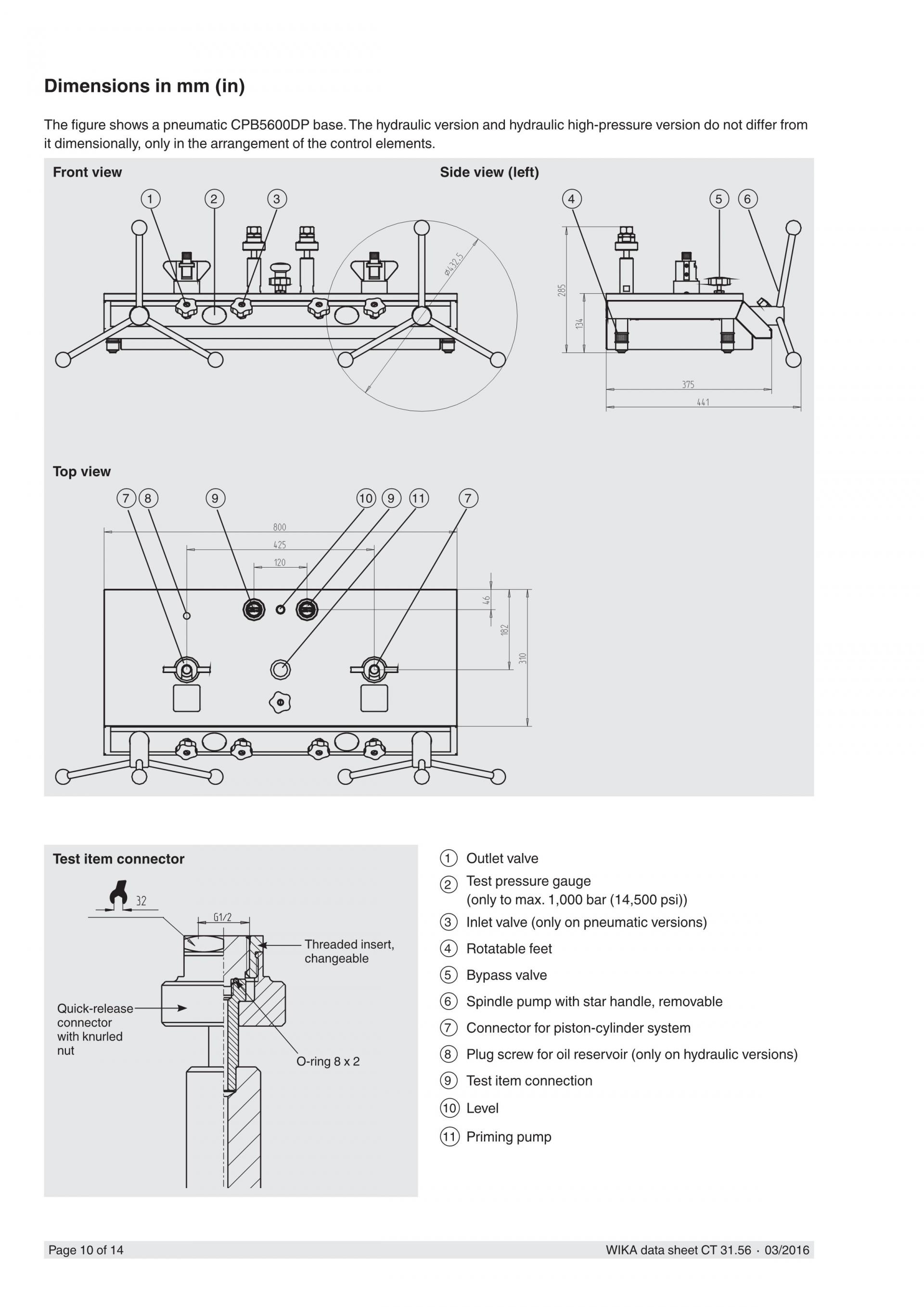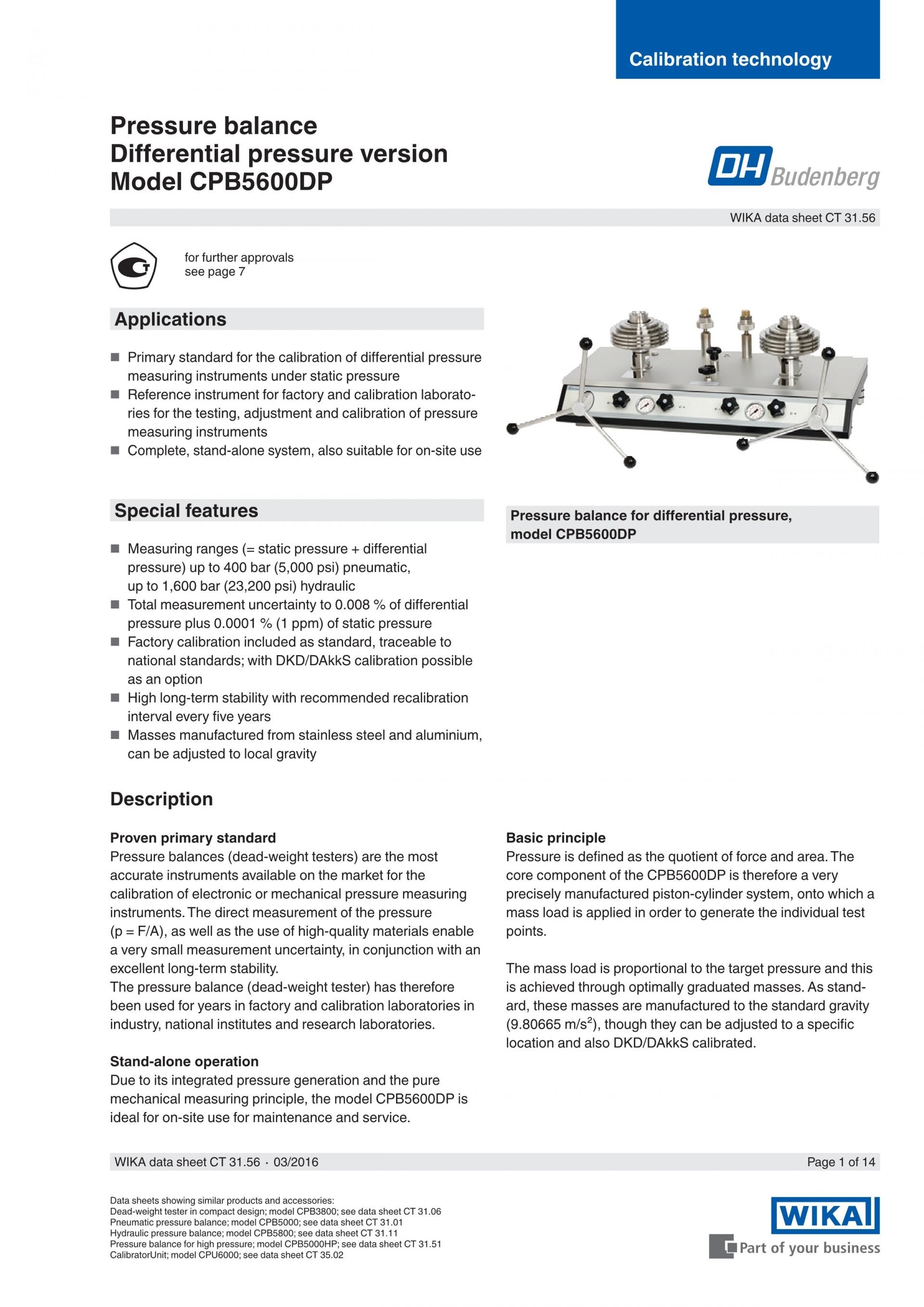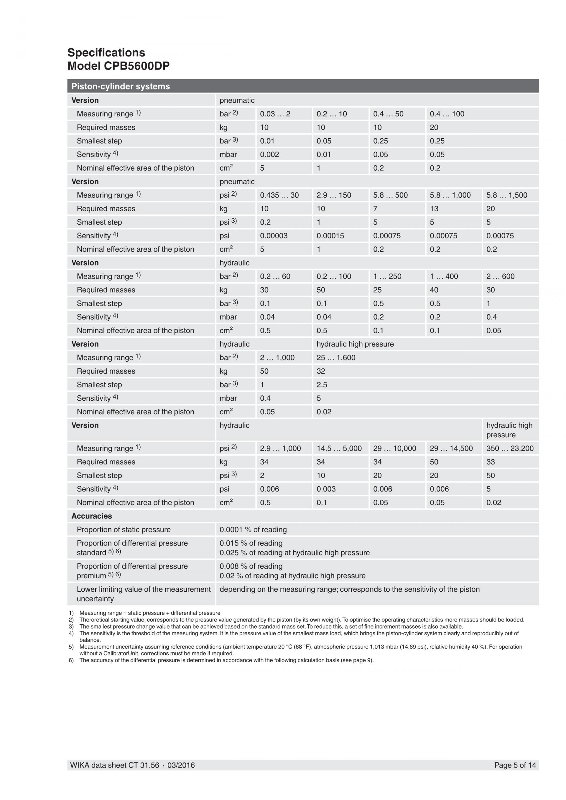 통합된 압력 생성 및 순수 기계적 측정 원리로 인해 CPB5600DP 모델은 유지 보수 및 서비스를 위한 현장 사용에 이상적입니다.