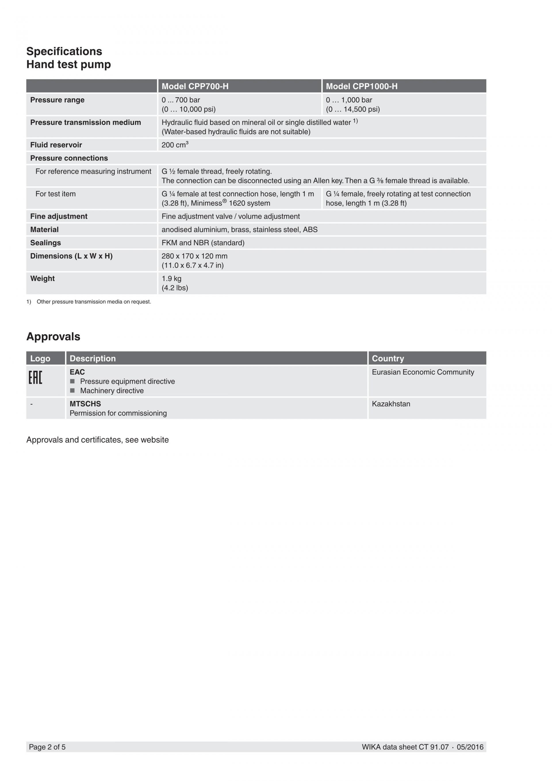 CPP700-H 및 CPP1000-H 핸드 테스트 펌프 (hand test pumps) 는 매우 컴팩트 한 치수 임에도 불구하고 간단하고 정확한 압력 생성을 최대 최대까지 가능하게합니다. (700 psi) 또는 1,000 bar (14,500 psi)의 압력을 시스템 압력에서 고압 발생으로 통합 전환합니다.