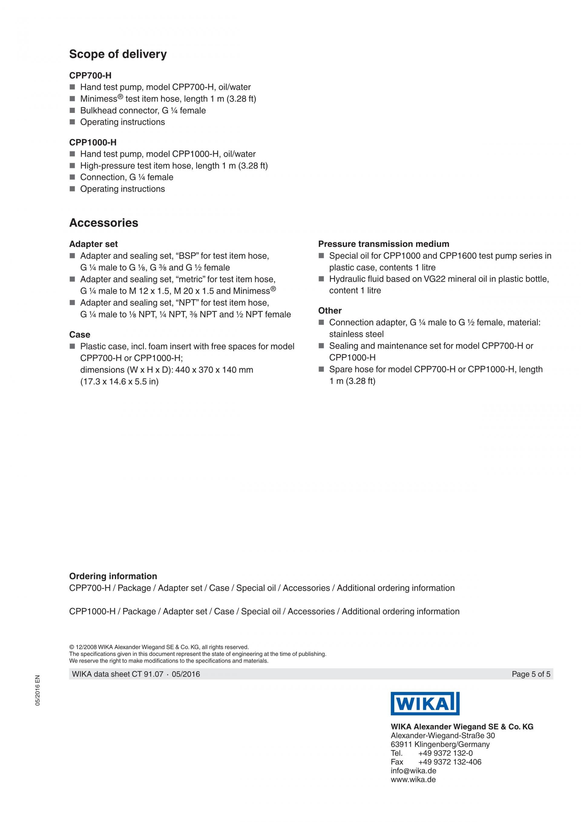 비카 WIKA CPP700-H 휴대용 유압식 테스트 펌프