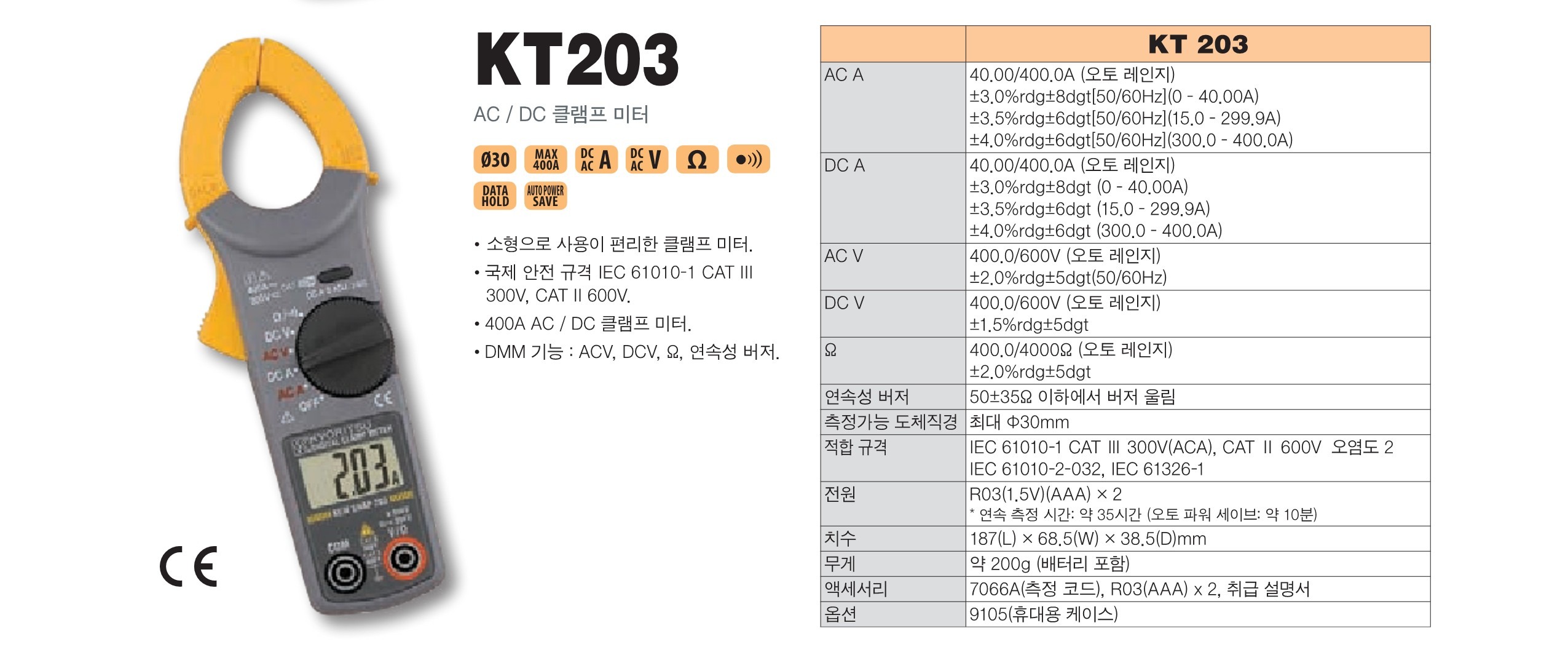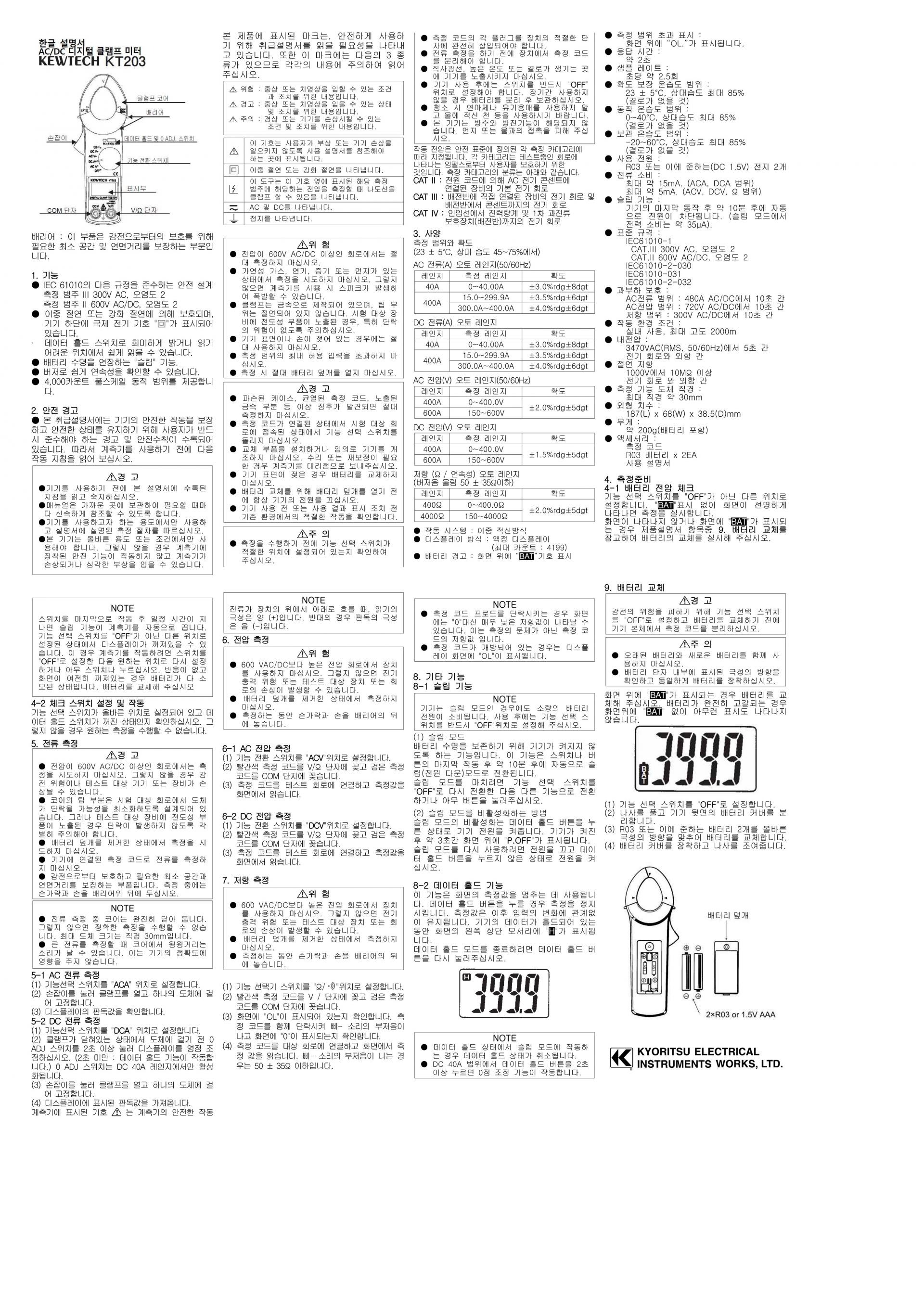 교리츠(교리스) KYORITSU KT 203 AC DC 디지털 클램프미터