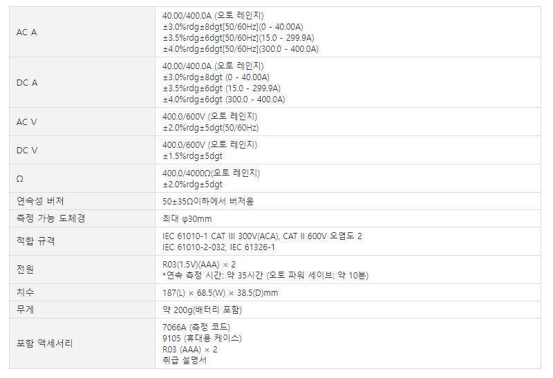 • 40A/400A AC/DC 전류 측정.