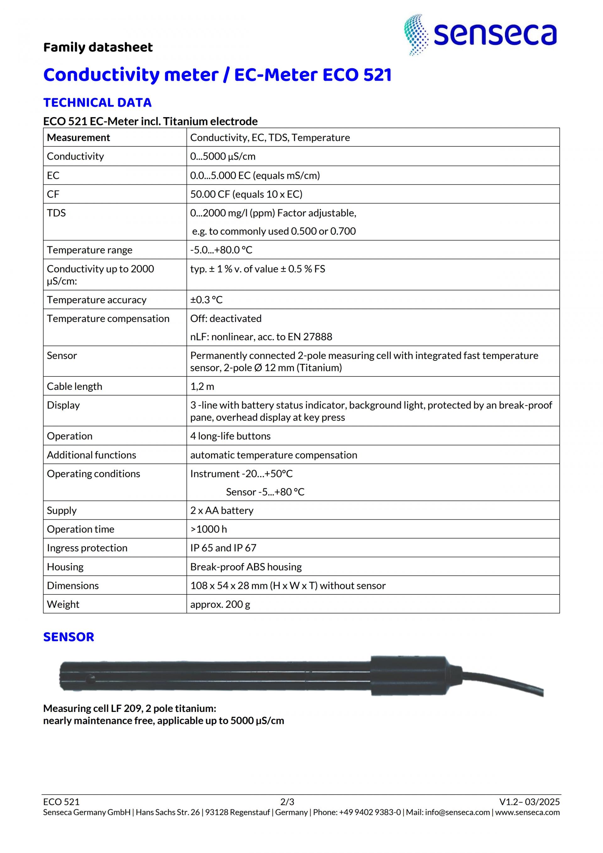 The measuring devices with the high-precision sensor can be used up to 5000 µS/cm and are therefore cost-optimized professional devices for use in the areas