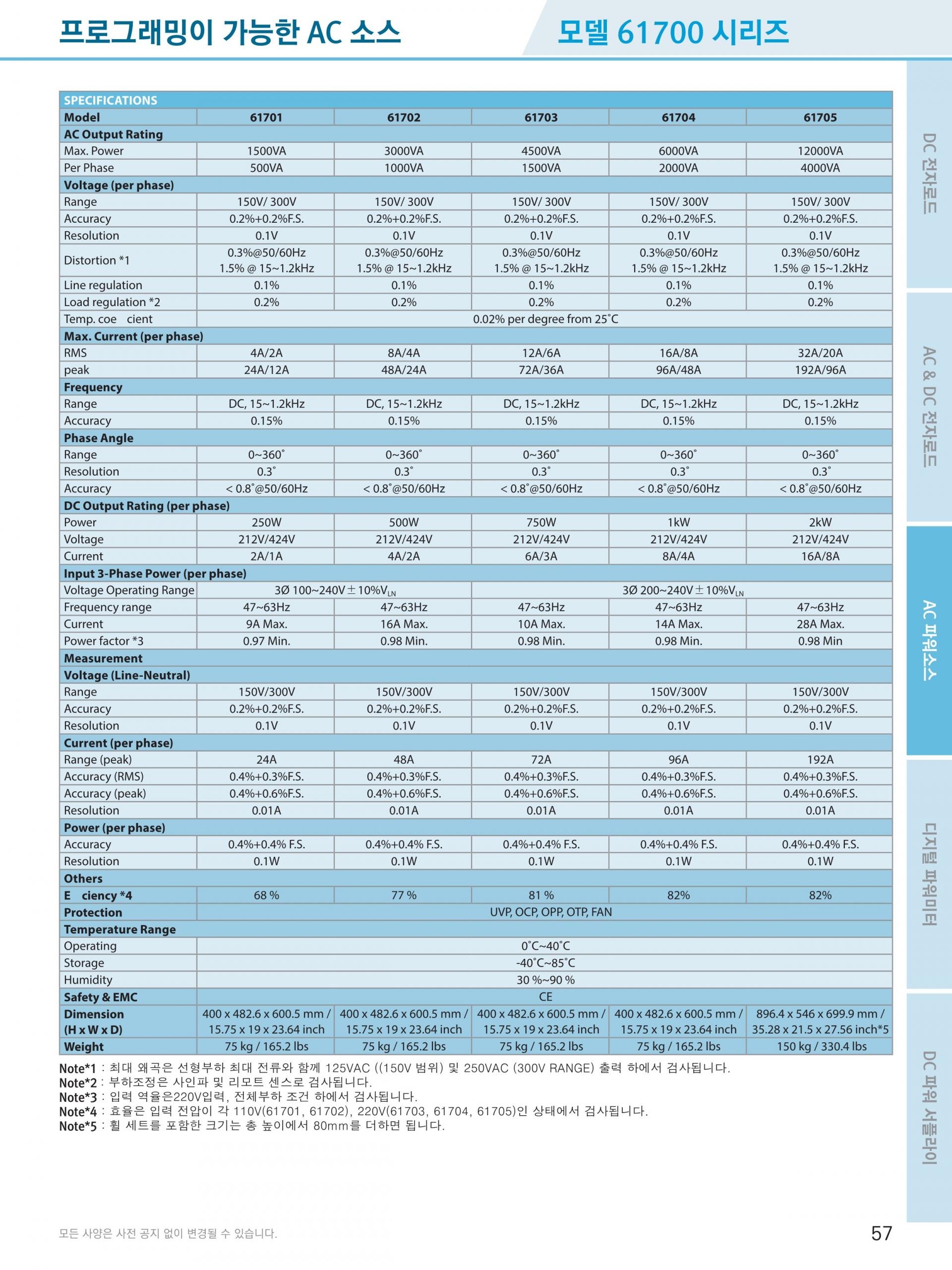 61700 3상 교류 전원 공급기 시리즈 – 3-Phase AC Power Source Series