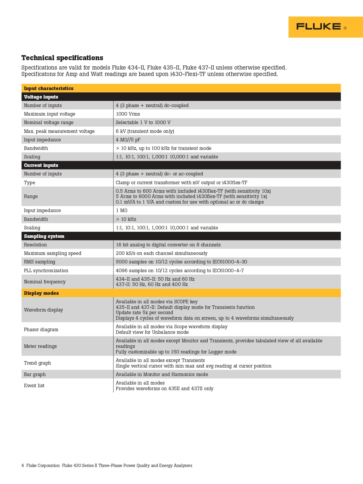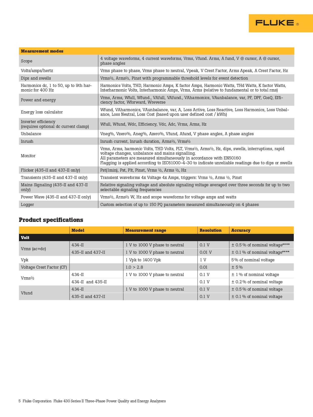 | Vrms(AC + DC) | 435-II | 1-1000V 위상-중성 | 0.01V | 공칭 전압의 ±0.1%4 |