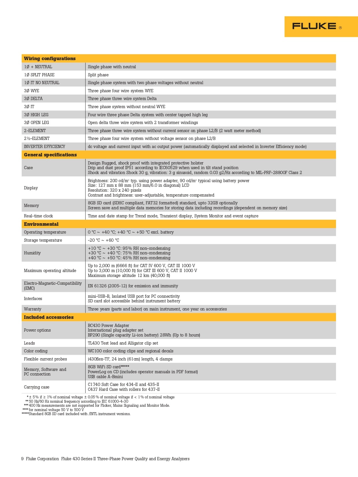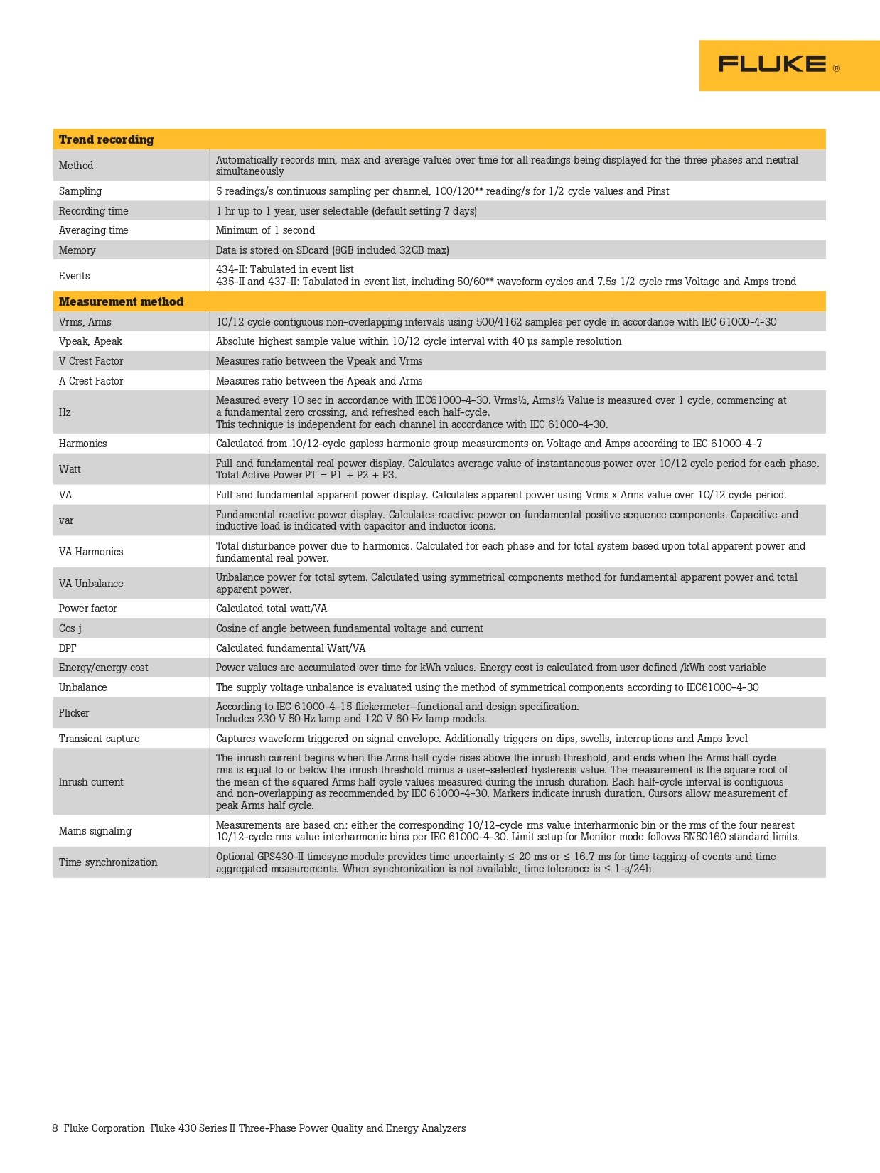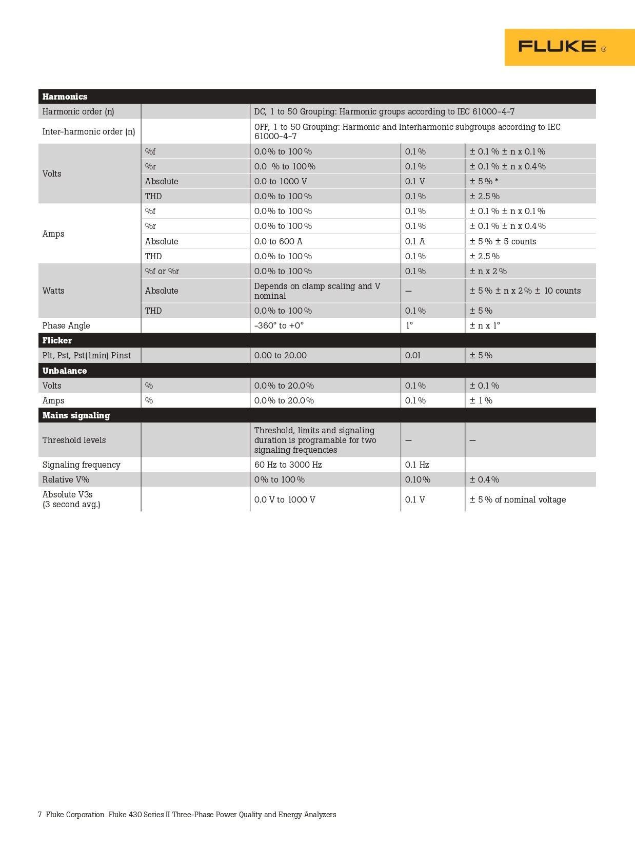 | Fluke 435, 공칭 50Hz | 42.50 Hz~57.50 Hz | 0.001 Hz | ±0.01Hz | |