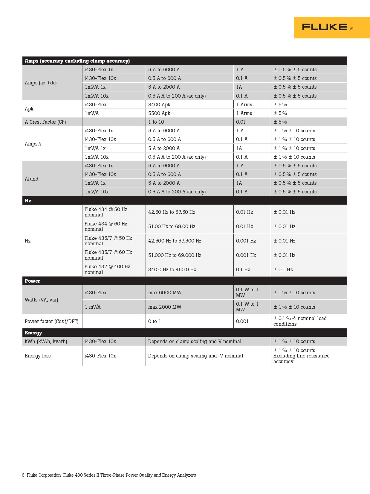 | Amps½ | i430-Flex 1x | 5-6000A | 1A | ±1% ±10 카운트 |