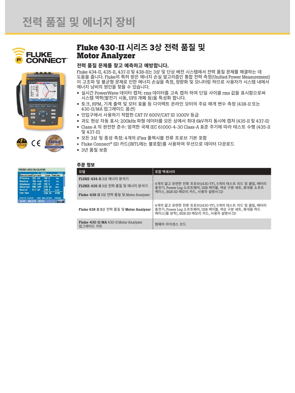 Fluke 434-II 에너지 분석기 및 Fluke 435-II 전력 품질/에너지 분석기로 전력 품질 문제를 분석하고, 낭비되는 에너지 비용을 계산하며, 가동 중단 시간을 예방하십시오.