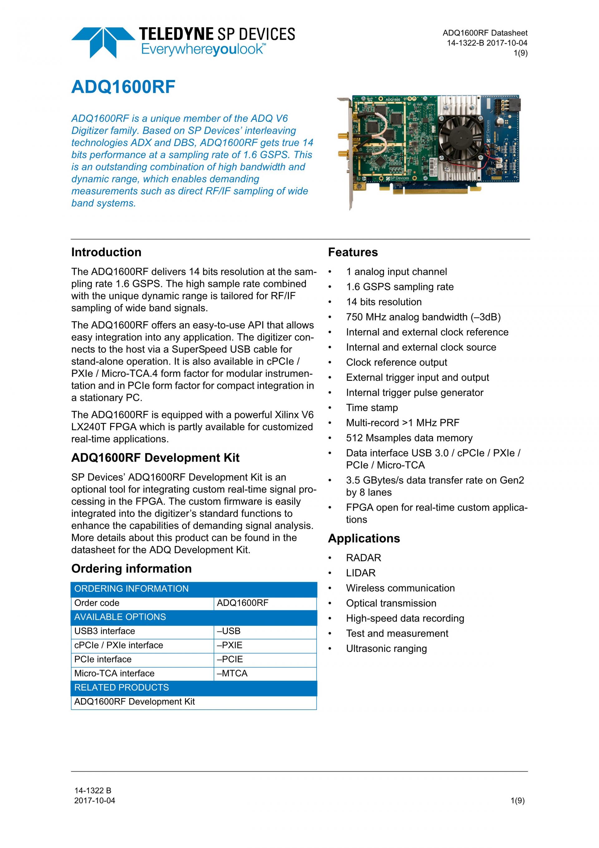 ADQ1600RF ADQ1600RF SP DEVICES SP DEVICES ADQ1600RF ADQ1600RF SP 디바이스 SP 디바이스 ADQ1600RF