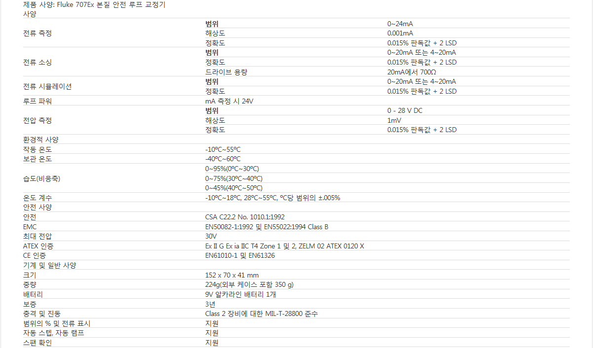 제품 개요: Fluke 707Ex 본질 안전 루프 교정기