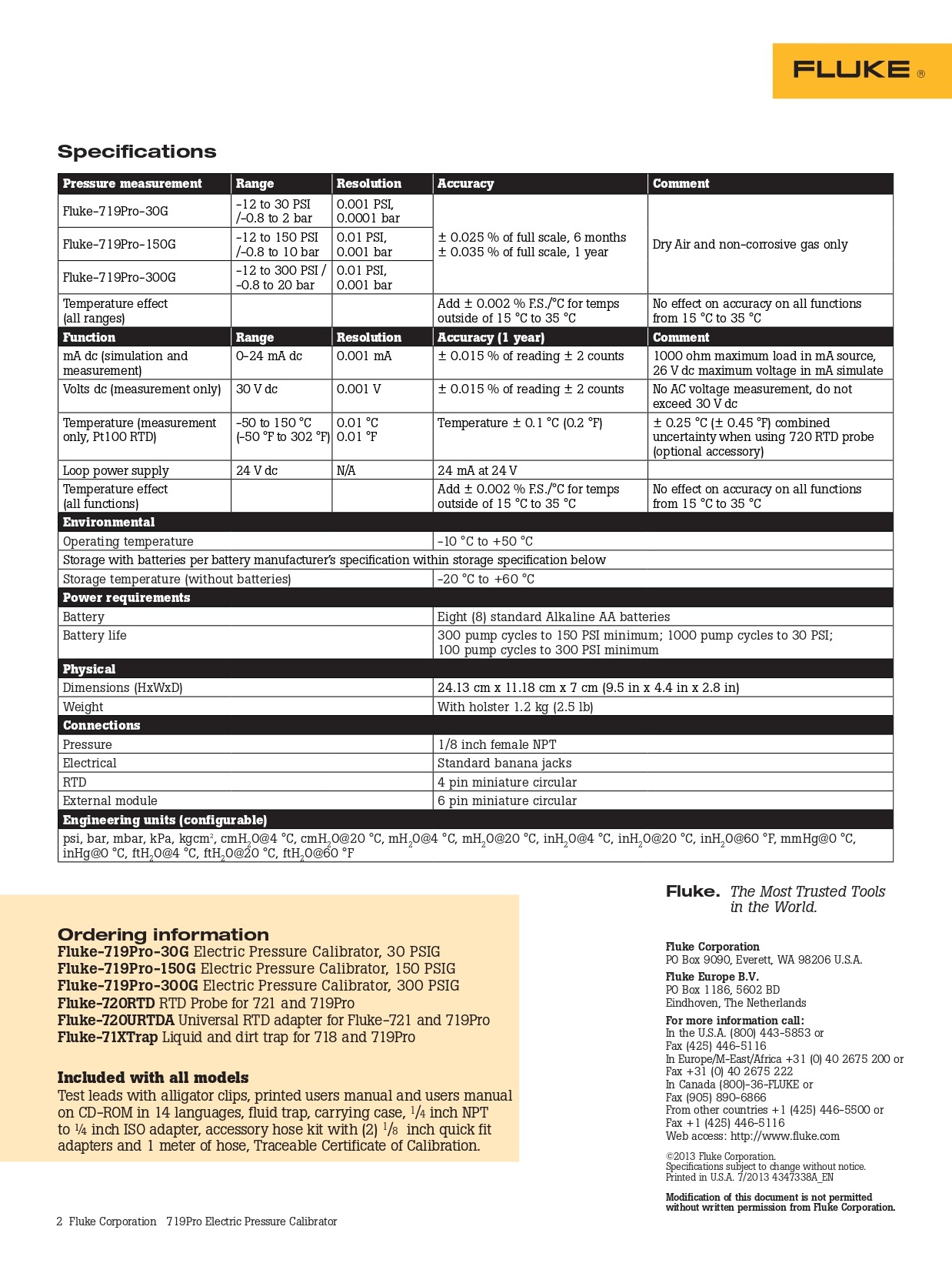| Fluke-719Pro-300G | 범위 | -12~300psi(-0.8~20bar) | |