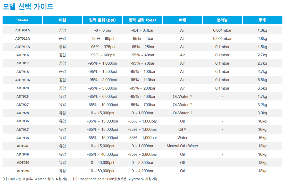 – 분해능 0.001psi (10Pa, 0.1mbar)