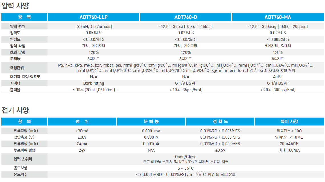 - 차압, 게이지압, 절대압, 대기압 측정 및 교정