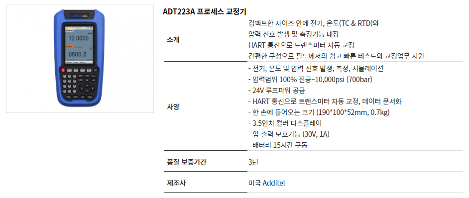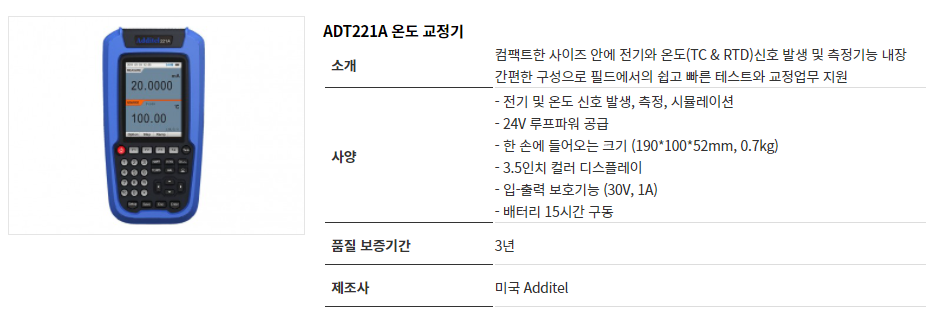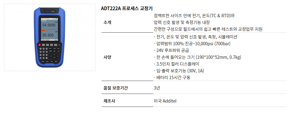 ADT222A : 온도(TC+RTD) + 압력 교정 가능