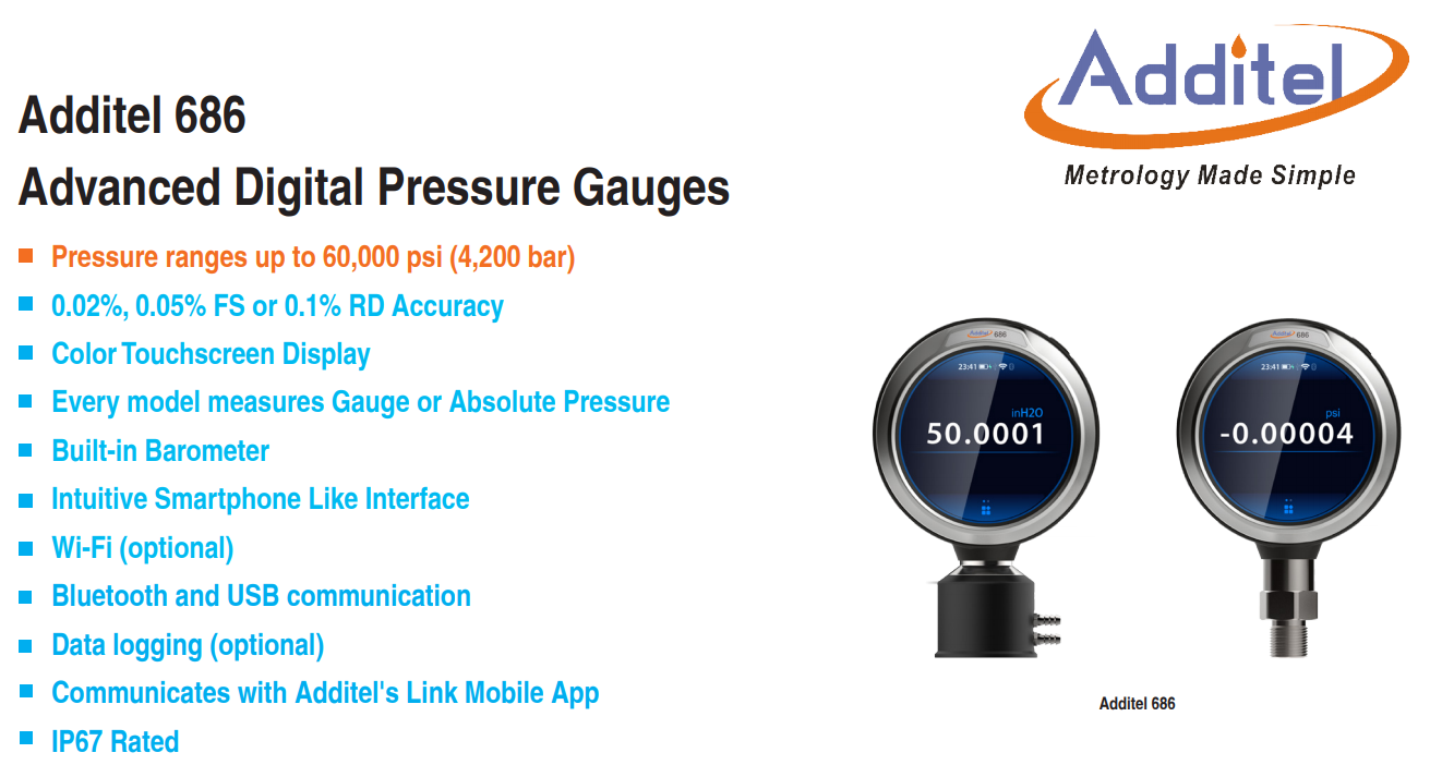| [3] Wetted parts material types may vary by pressure range. Please refer to the manual or contact Additel for more information. | |