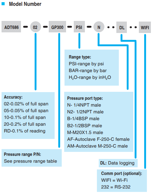 | Accuracy (For detailed accuracy, please see pressure range table) | 686-02 : 0.02% of full span |