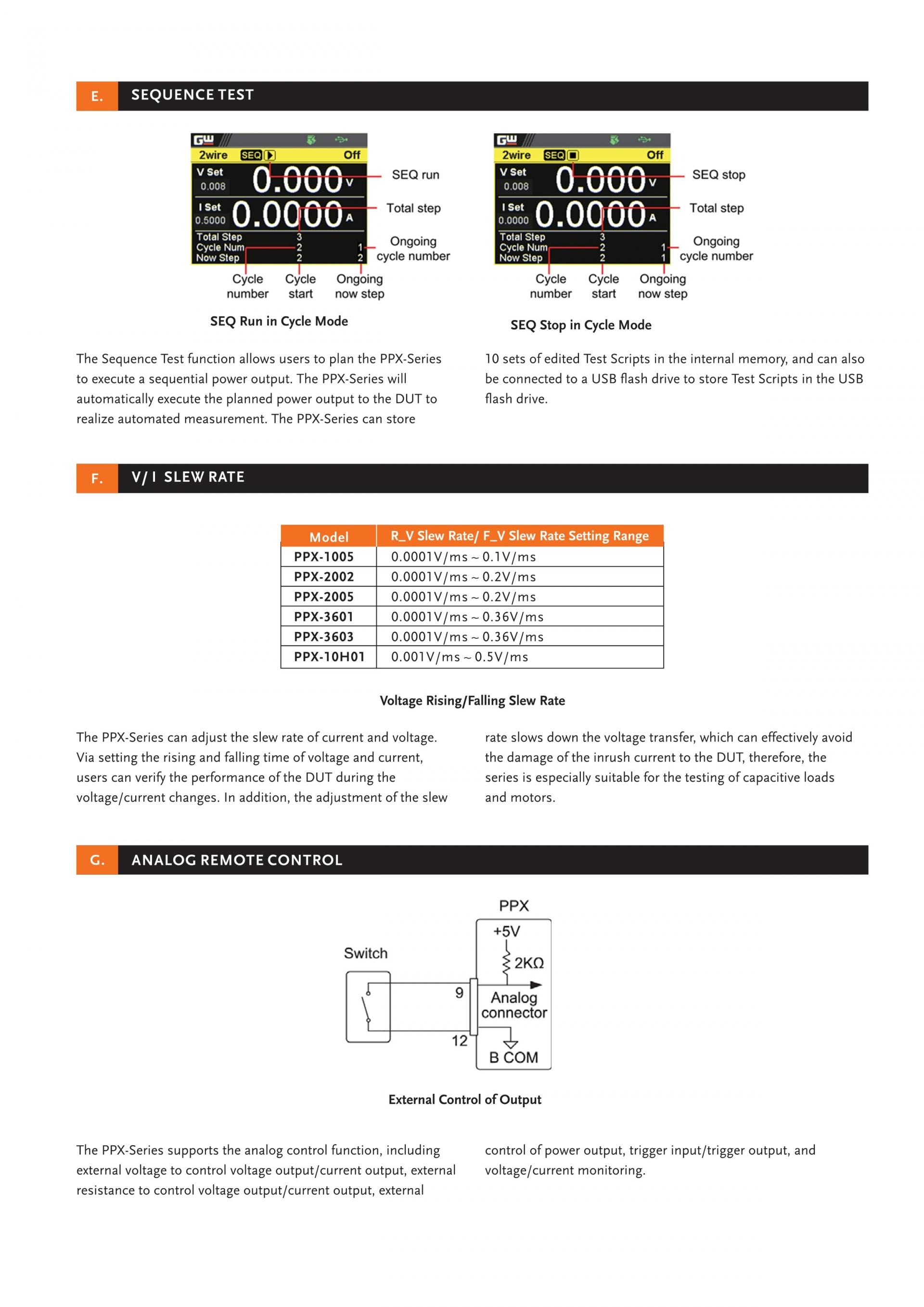 It also provides constant voltage and constant current priority output modes, and the series can also set the voltage and current rising/falling slew rates separately, and the delay time for the output to be turned on and off.