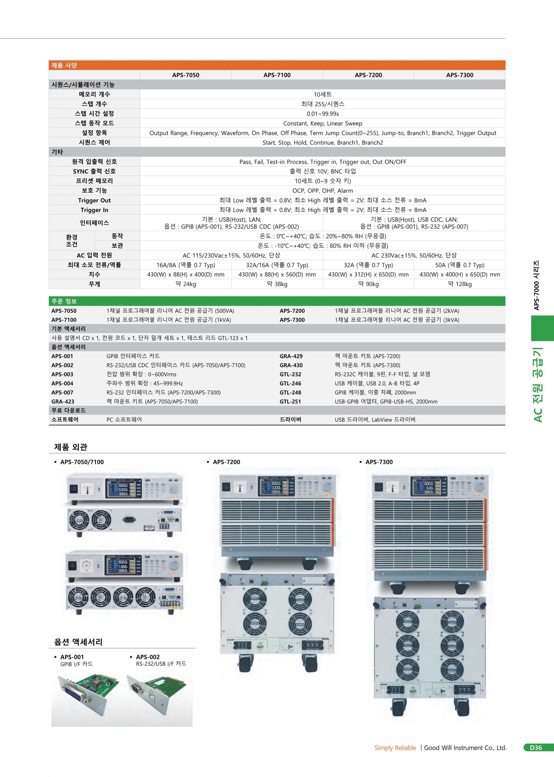 GW INSTEK 굿윌인스텍 APS-7200 프로그래머블 리니어 AC 전원공급기