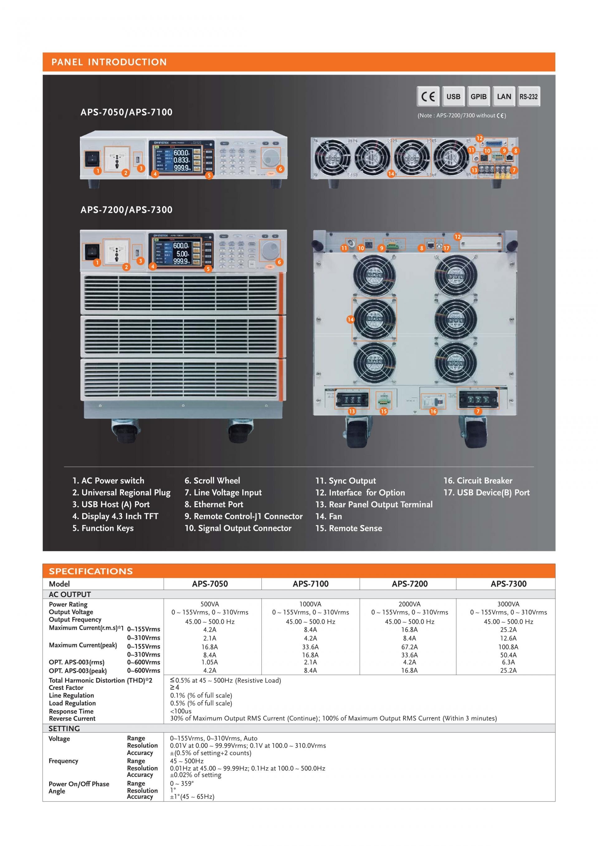 APS-7000 Series — Programmable Linear AC Power Sources