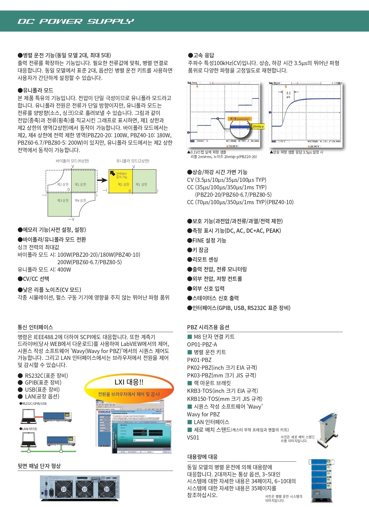 | PBZ20-200 BP | ±0〜20V / ±0〜200A, LAN인터페이스를 장비 (LXI 호환) |