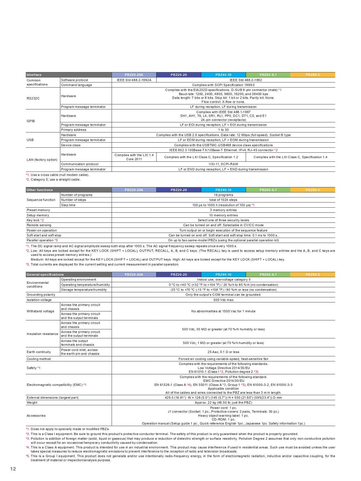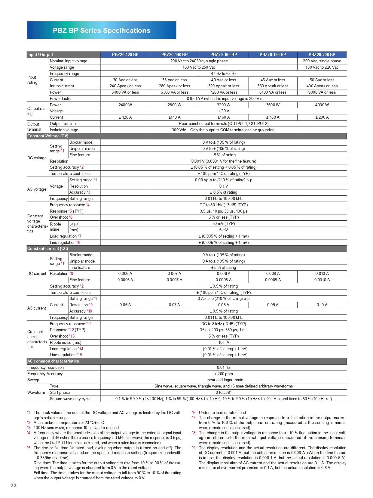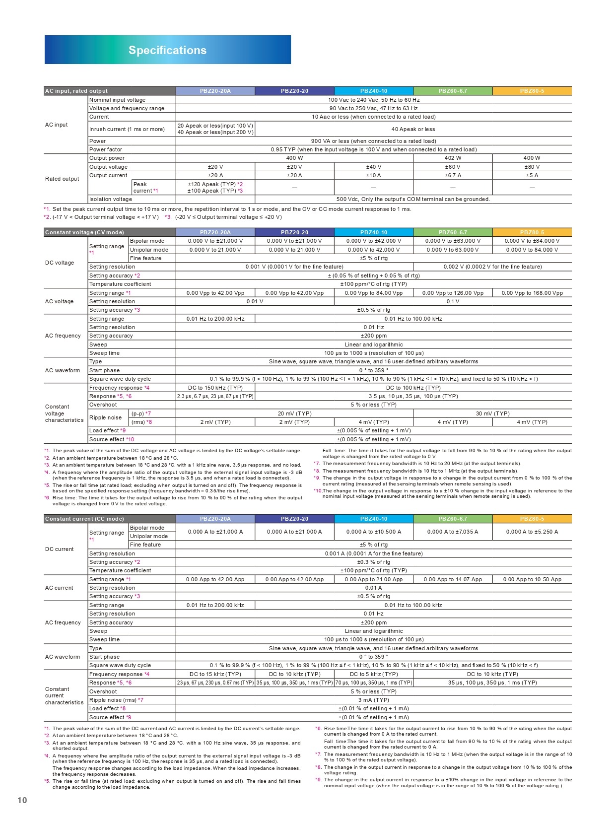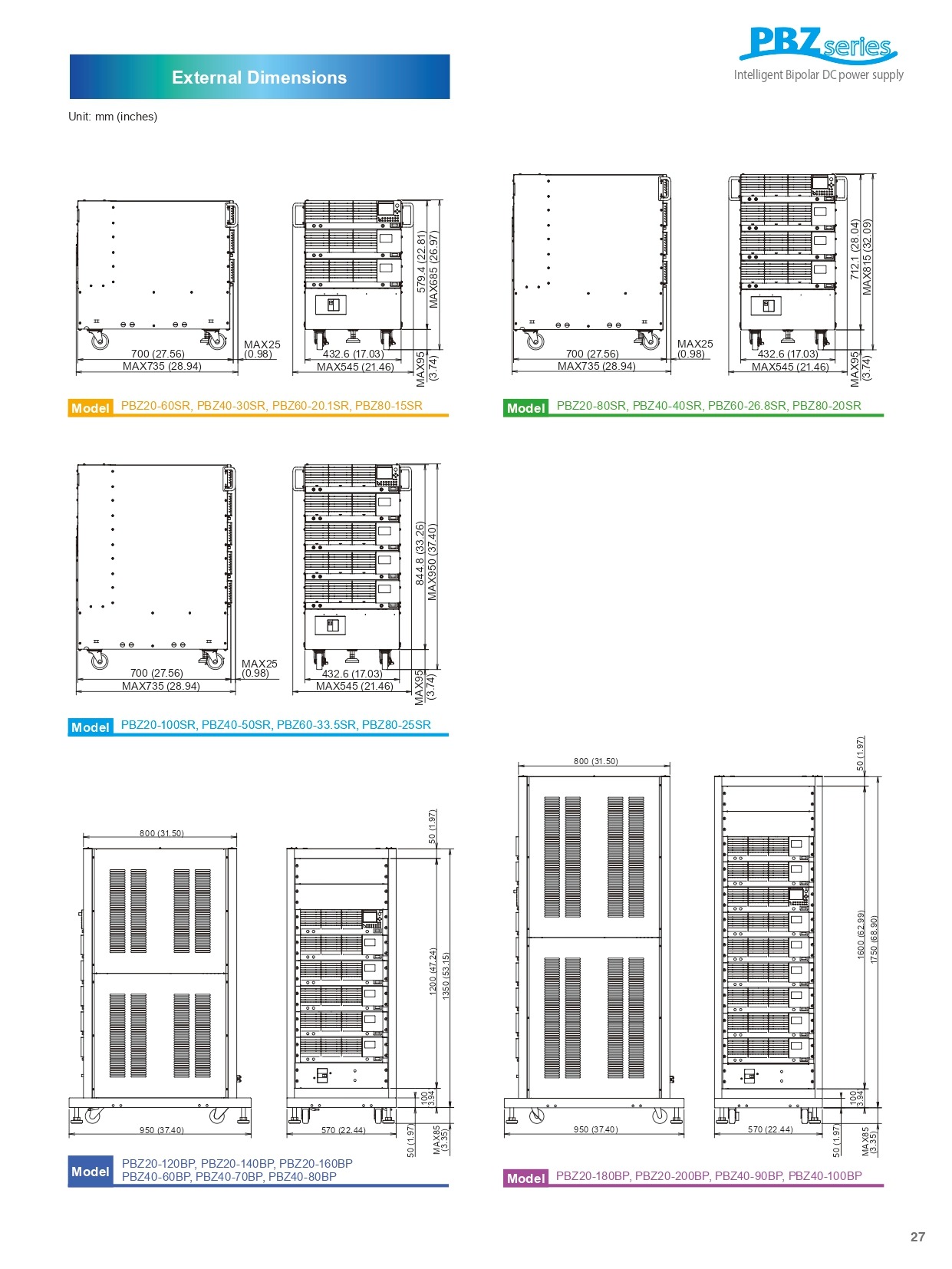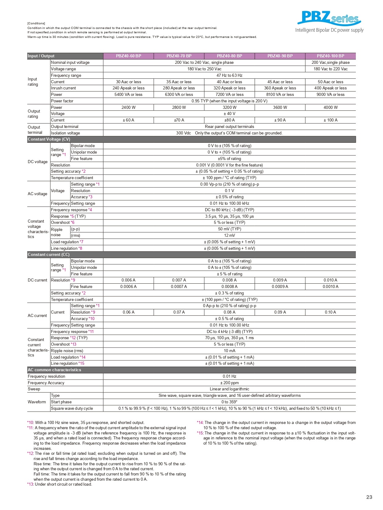 *PBZ40-10: 180W, PBZ60-6.7/PBZ80-5: 200W
