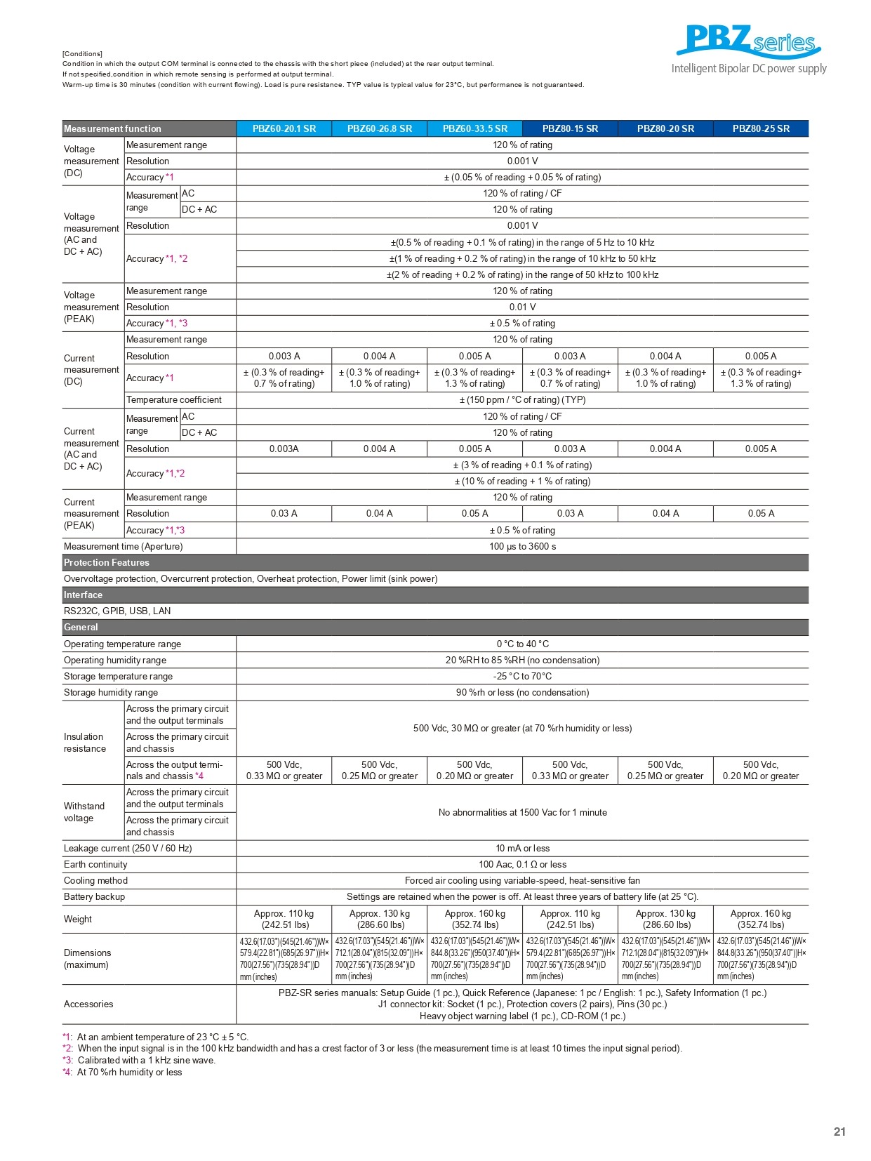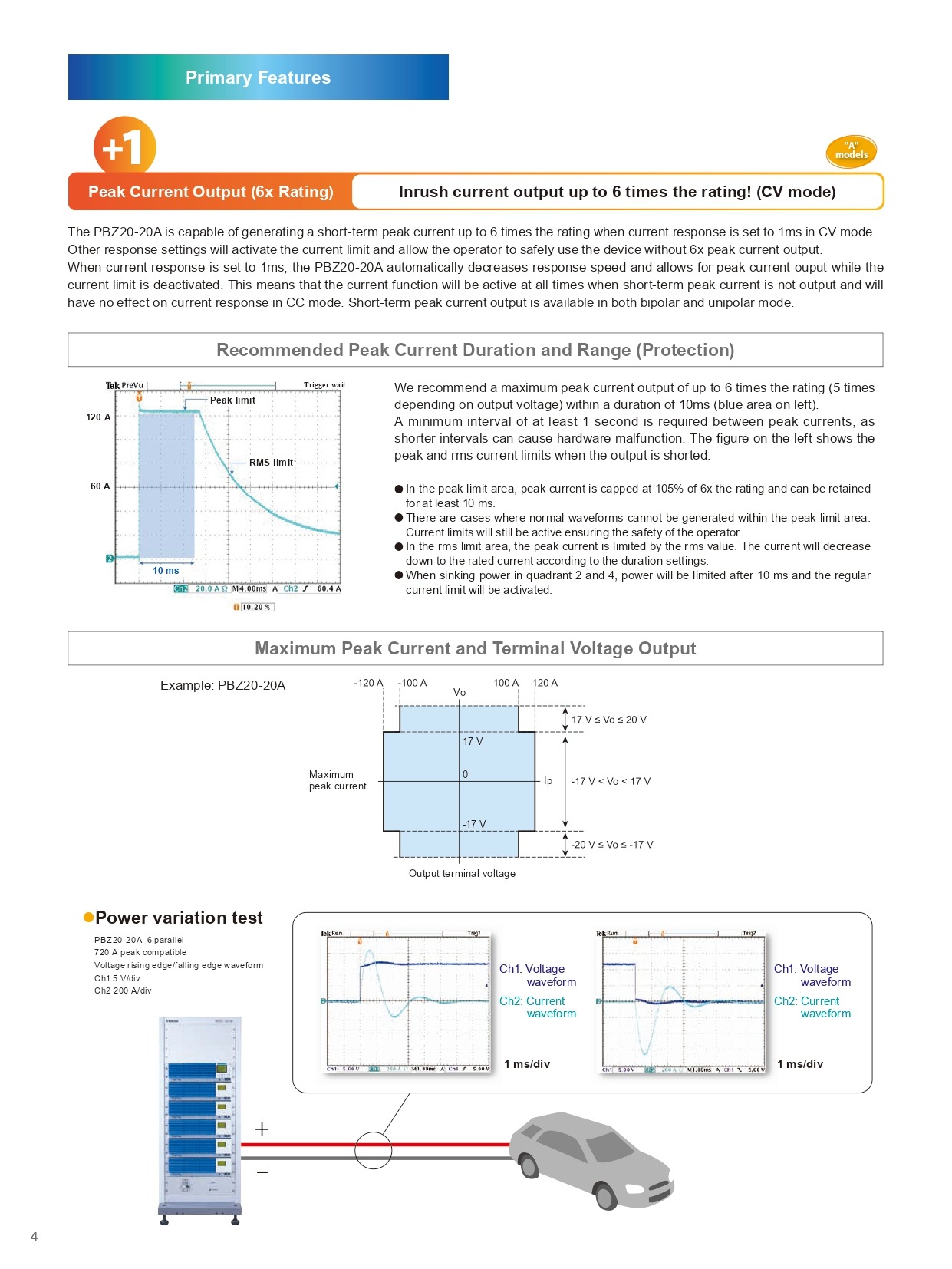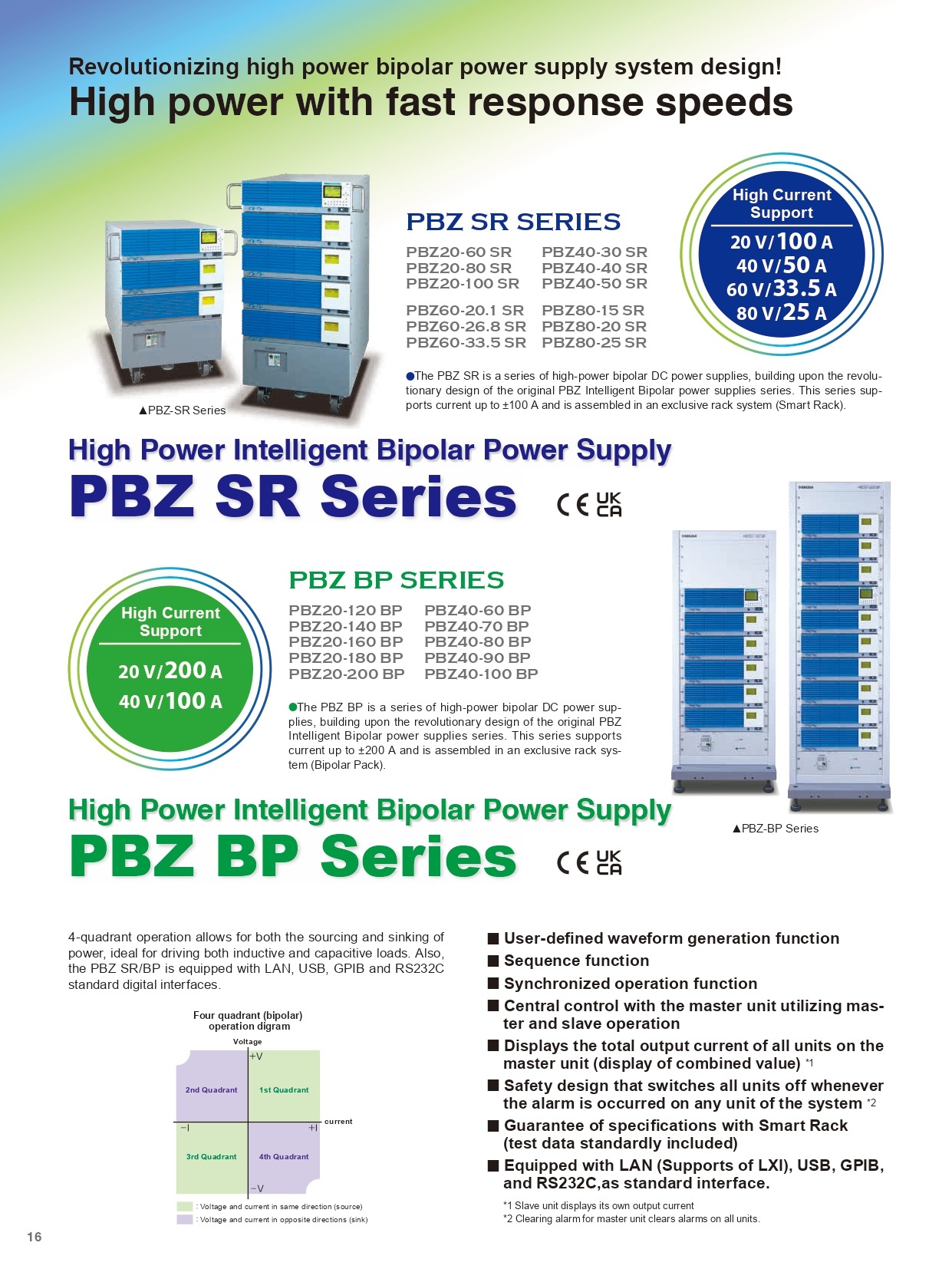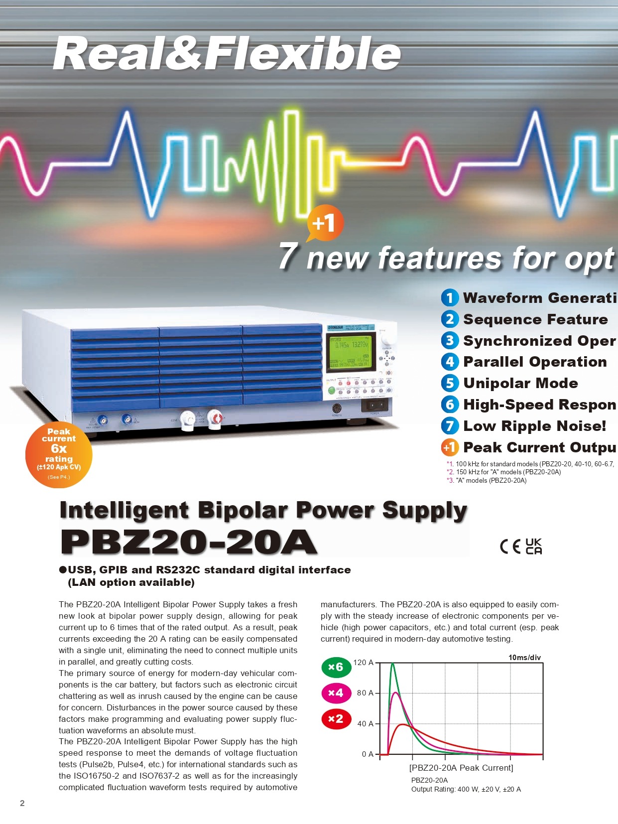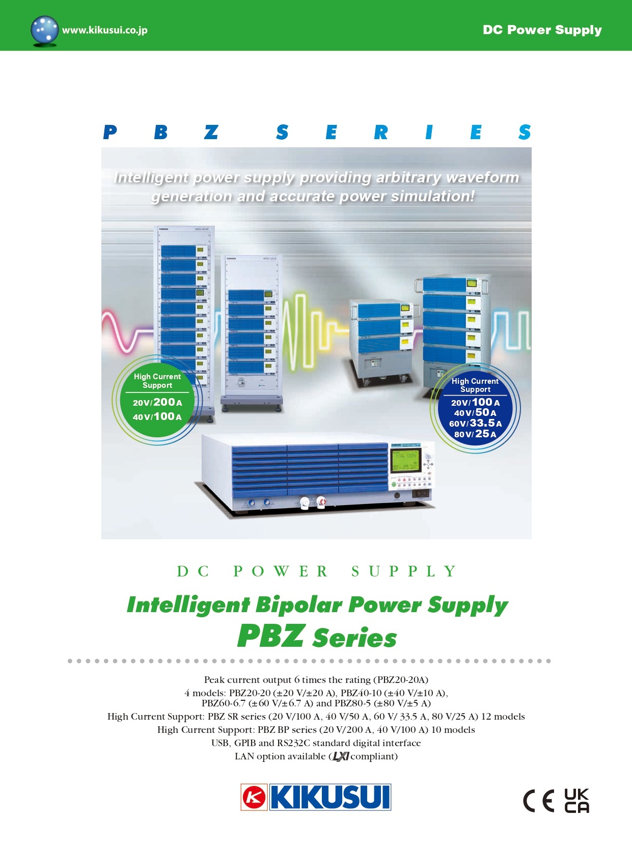 | PBZ20-20A | ±0〜20V / ±0〜20A, 6 배 피크 전류 지원 |