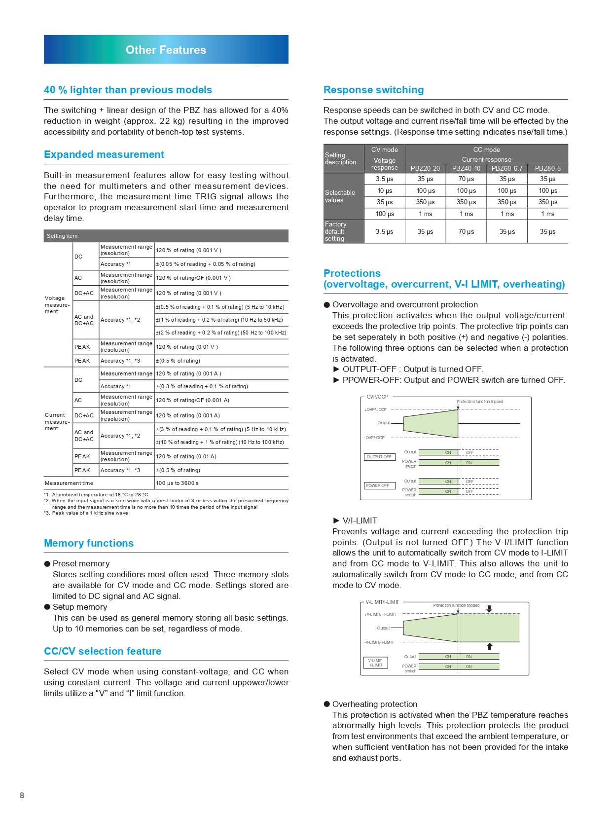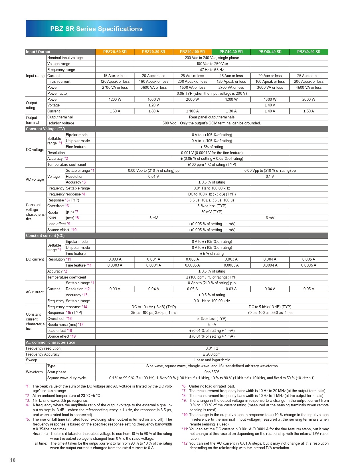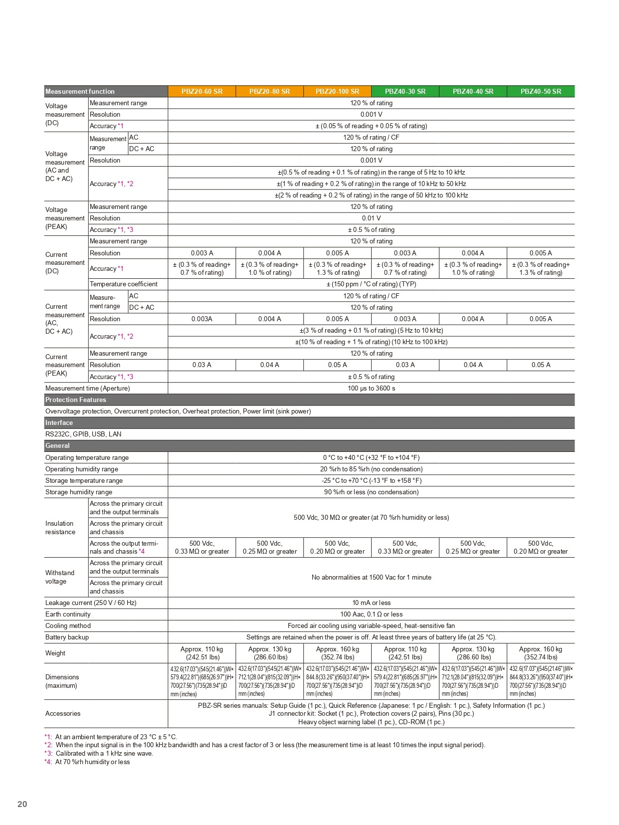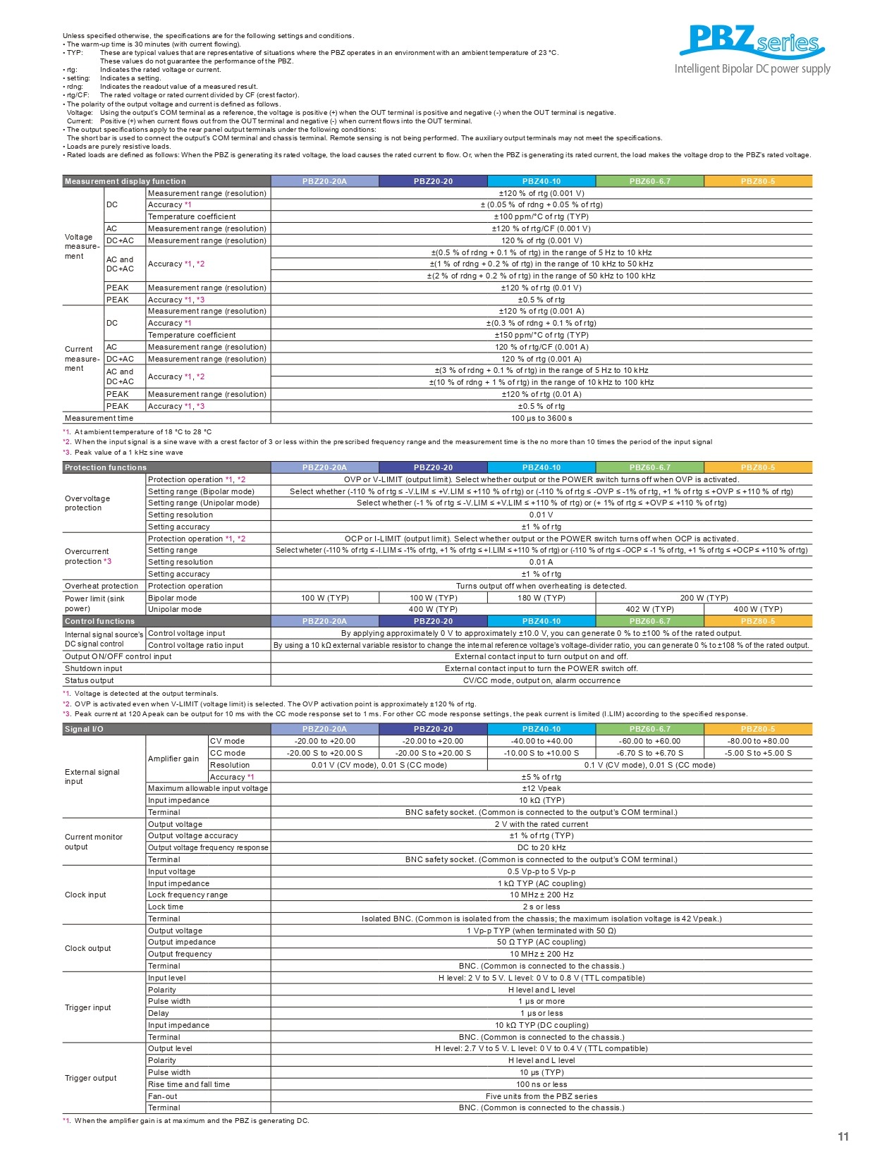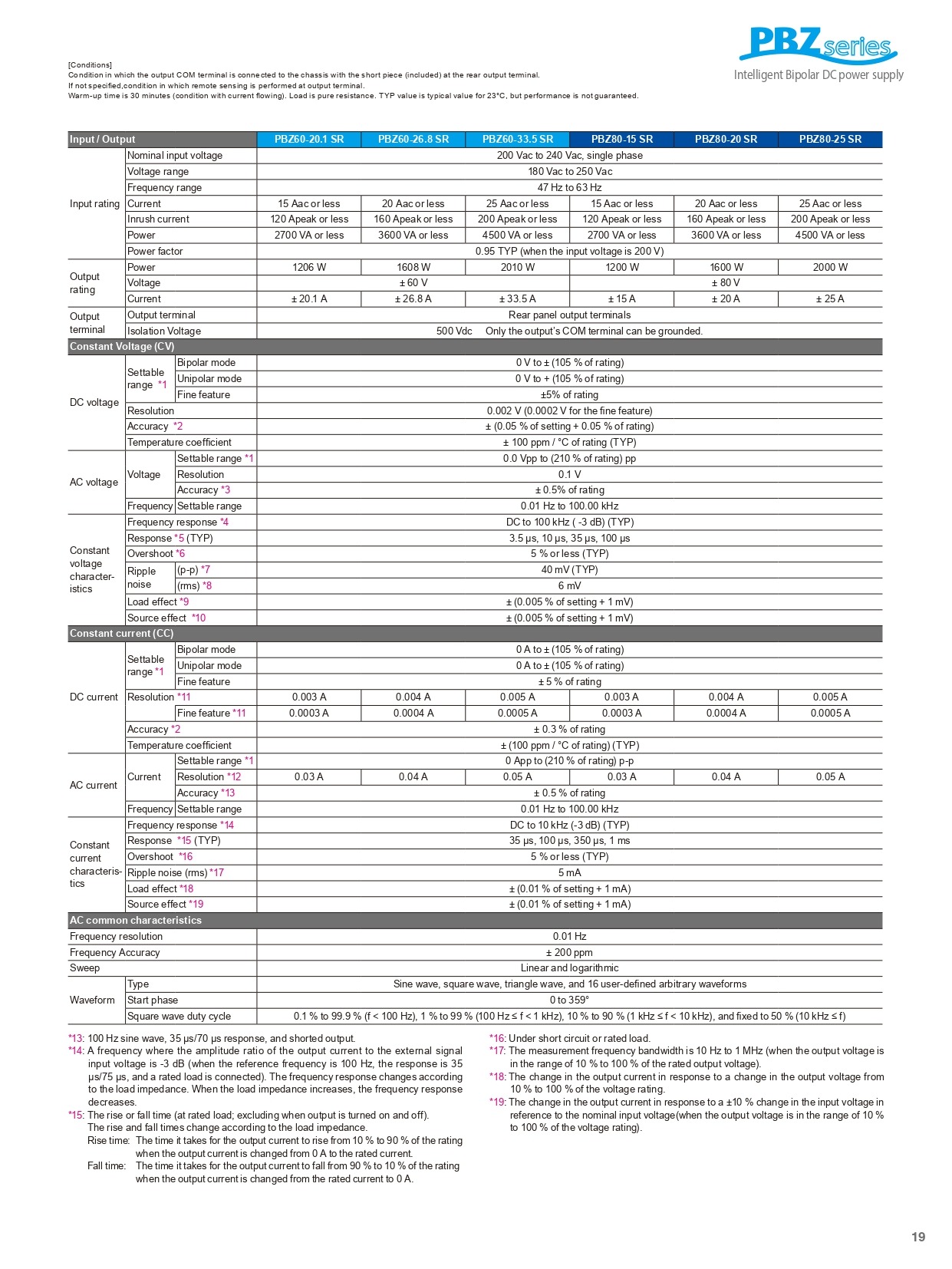 | PBZ20-20A | ±0〜20V / ±0〜20A, 6 배 피크 전류 지원 |