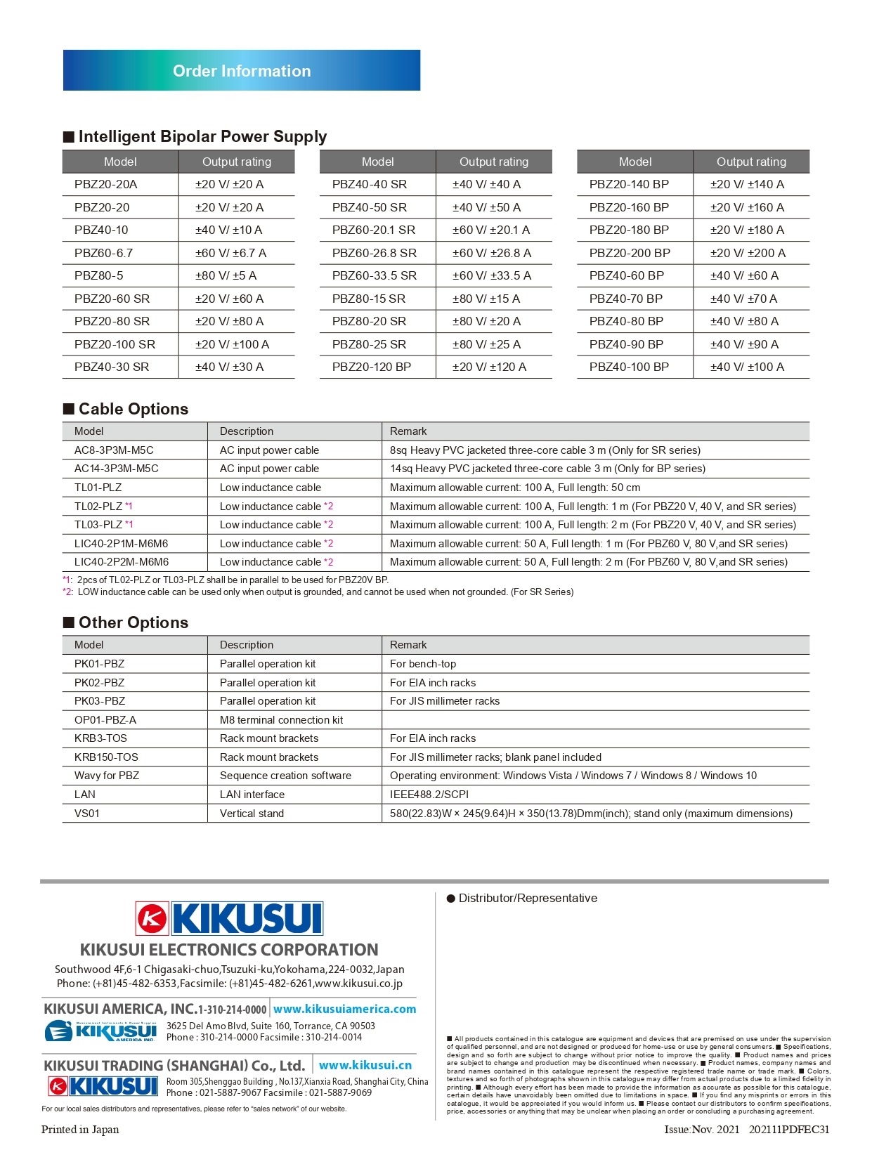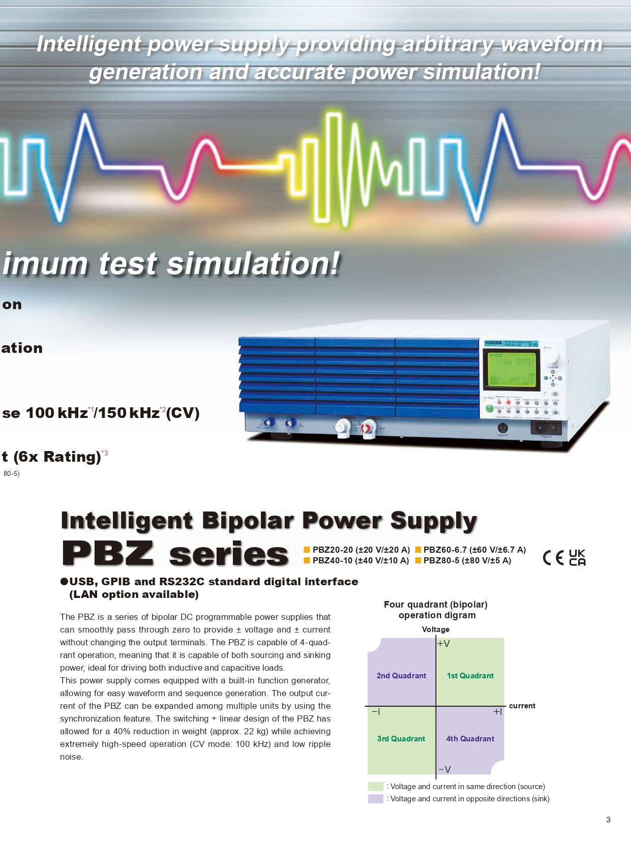 | PBZ40-60 BP | ±0〜40V / ±0〜60A, LAN인터페이스를 장비 (LXI 호환) |