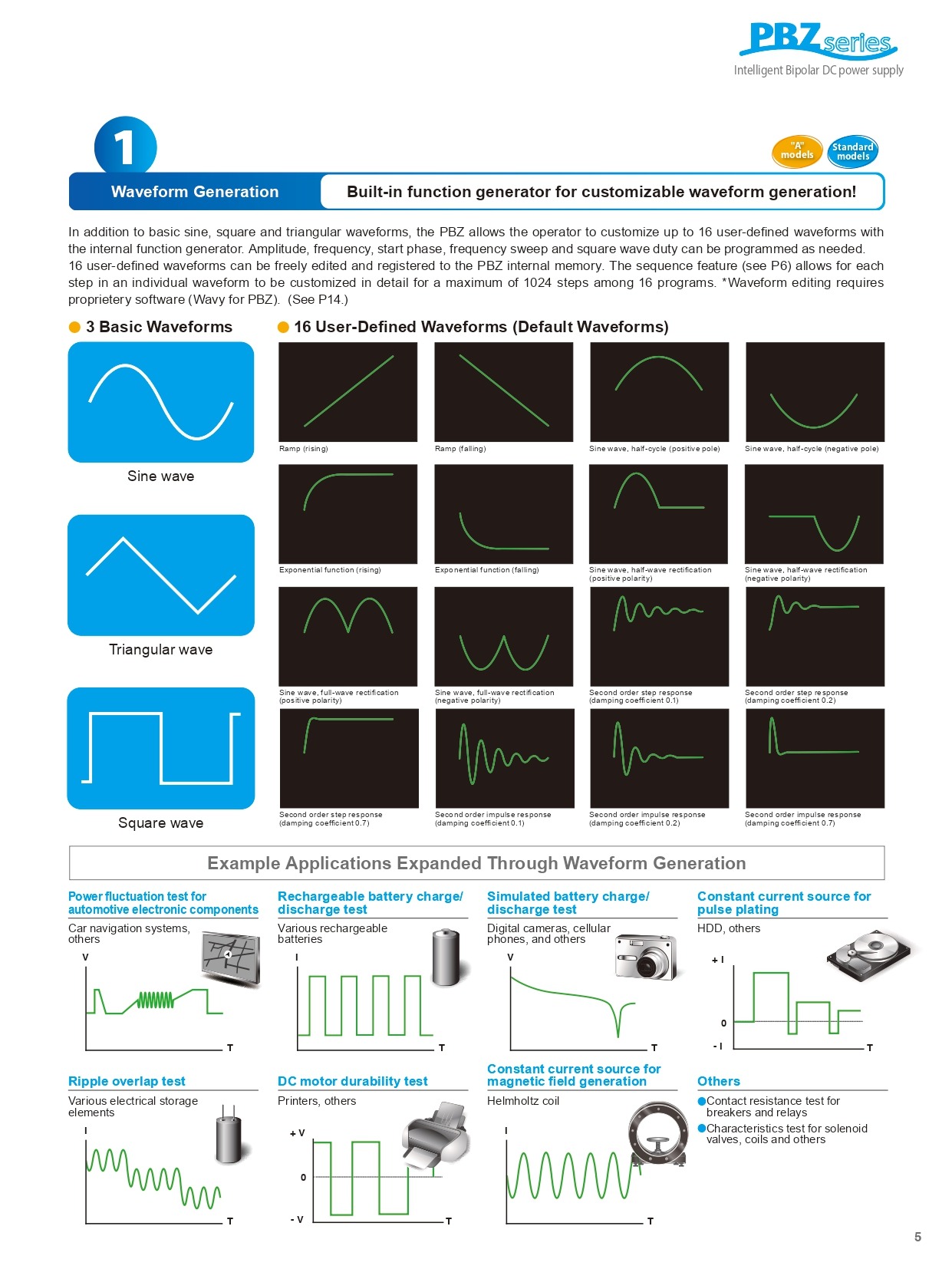 「스위칭」+「리니어」방식을 채용해 경량화를 실현하면서 저리플・노이즈로 고속동작도 가능합니다. 4상한동작에 의해 전력을 공급(소스)할 수 있는 것과 동시에 흡수(싱크)할 수도 있어, 유도성 부하나 용량성 부하를 구동할 수 있습니다. 또한, 신호 발생기능을 탑재해, 자유자재로 파형 생성과 시퀀스의 설정을 할 수 있습니다. 또한, 전원 변동시험에 필수인 동기운전기능이나 출력전류를 확장하는 병렬운전기능도 장비하고 있습니다.