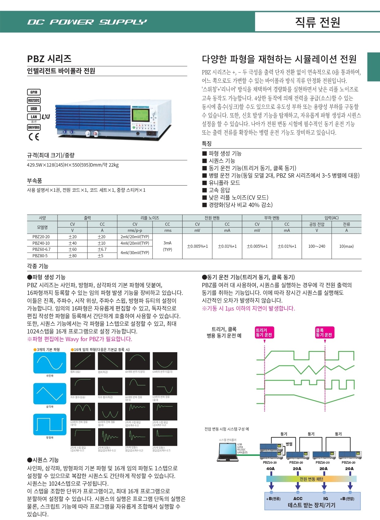 | PBZ20-80 SR | ±0〜20V / ±0〜80A, LAN인터페이스를 장비 (LXI 호환) |