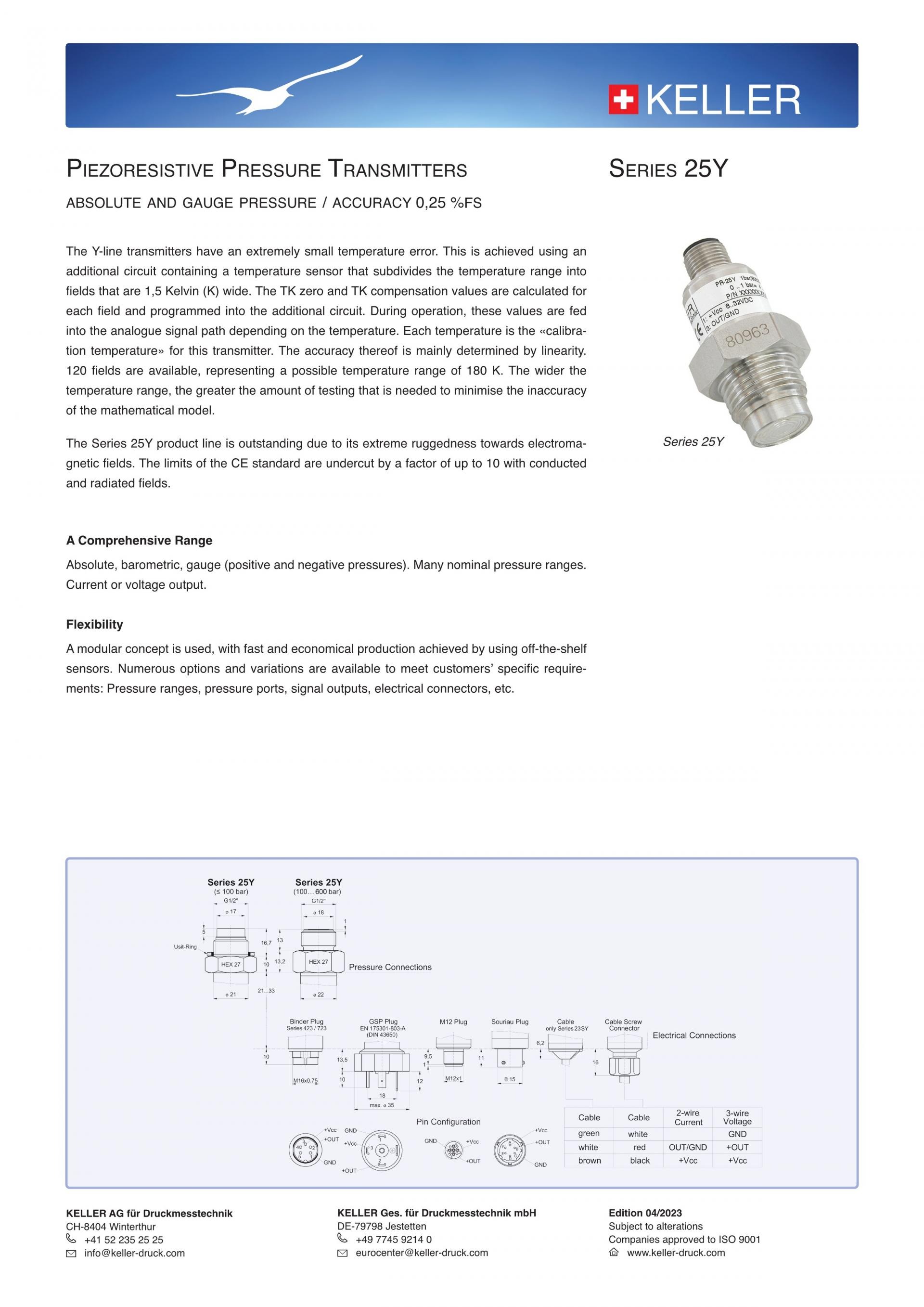 25Y Piezoresistive Pressure transmitters absolute and gauge Pressure / accuracy 0,25 %fs