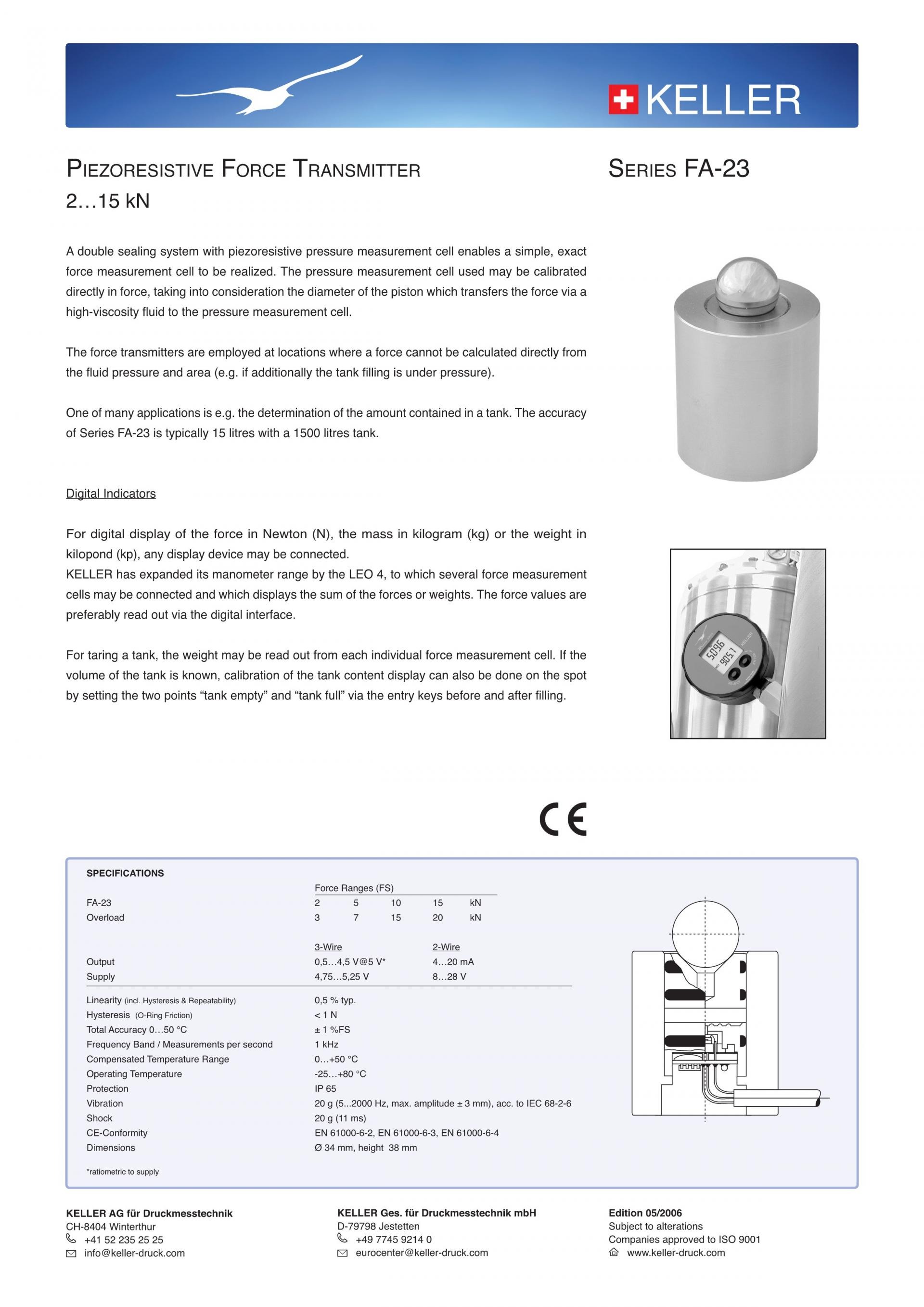 FA-23 Piezoresistive Force transmitter 2…15 kN