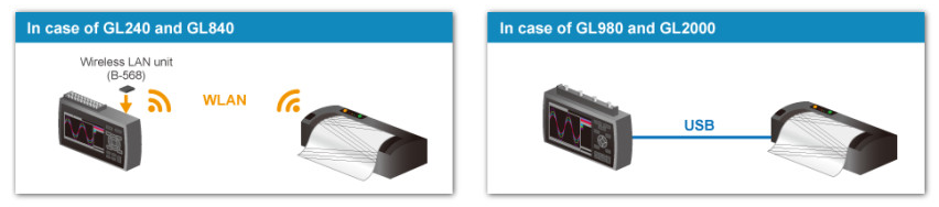 GL 시리즈에 직접 연결할 수 있으며 PC를 사용하지 않고도 데이터를 인쇄 할 수 있습니다.